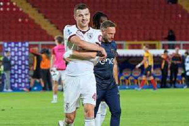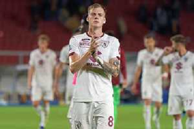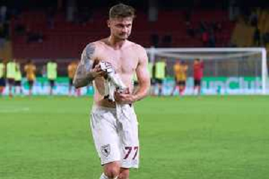Ivan Ilic of Torino FC applauds fans during the Italian soccer Serie A match US Lecce vs Torino FC on October 28, 2023 at Via del Mare Stadium in Lecce, Italy. Photo by Emmanuele Mastrodonato/ag. Aldo Liverani sas