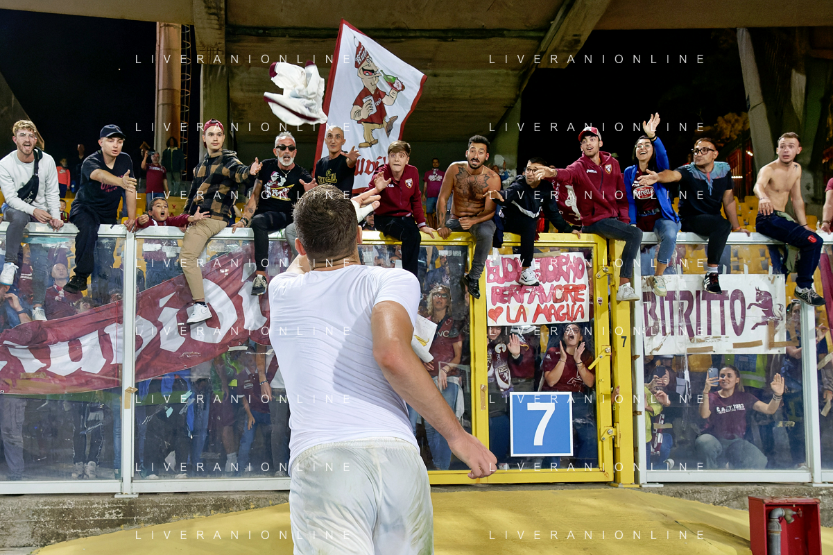 Alessandro Buongiorno of Torino FC under the section of Torino FC fans during the Italian soccer Serie A match US Lecce vs Torino FC on October 28, 2023 at Via del Mare Stadium in Lecce, Italy. Photo by Emmanuele Mastrodonato/ag. Aldo Liverani sas