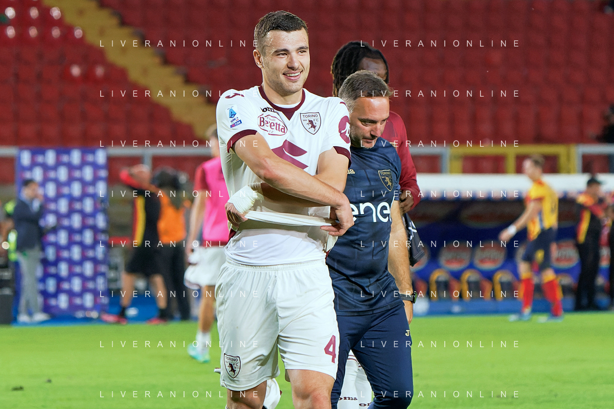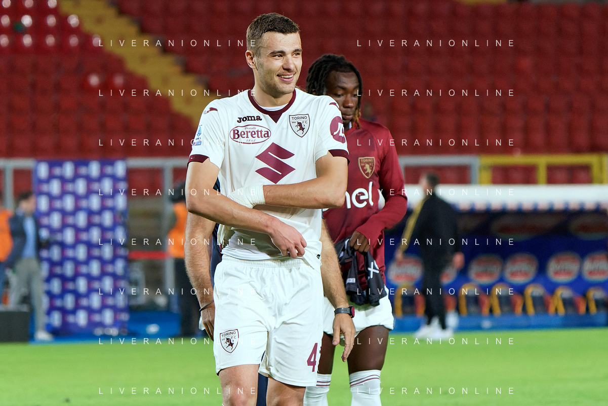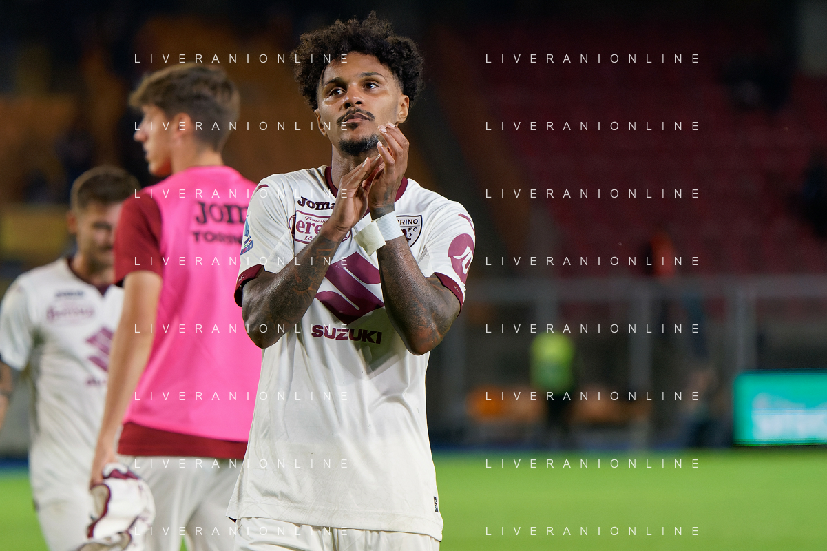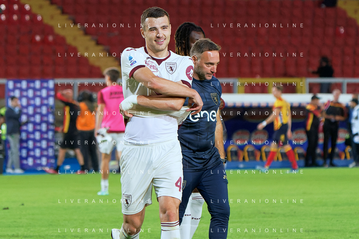 Alessandro Buongiorno of Torino FC applauds fans during the Italian soccer Serie A match US Lecce vs Torino FC on October 28, 2023 at Via del Mare Stadium in Lecce, Italy. Photo by Emmanuele Mastrodonato/ag. Aldo Liverani sas