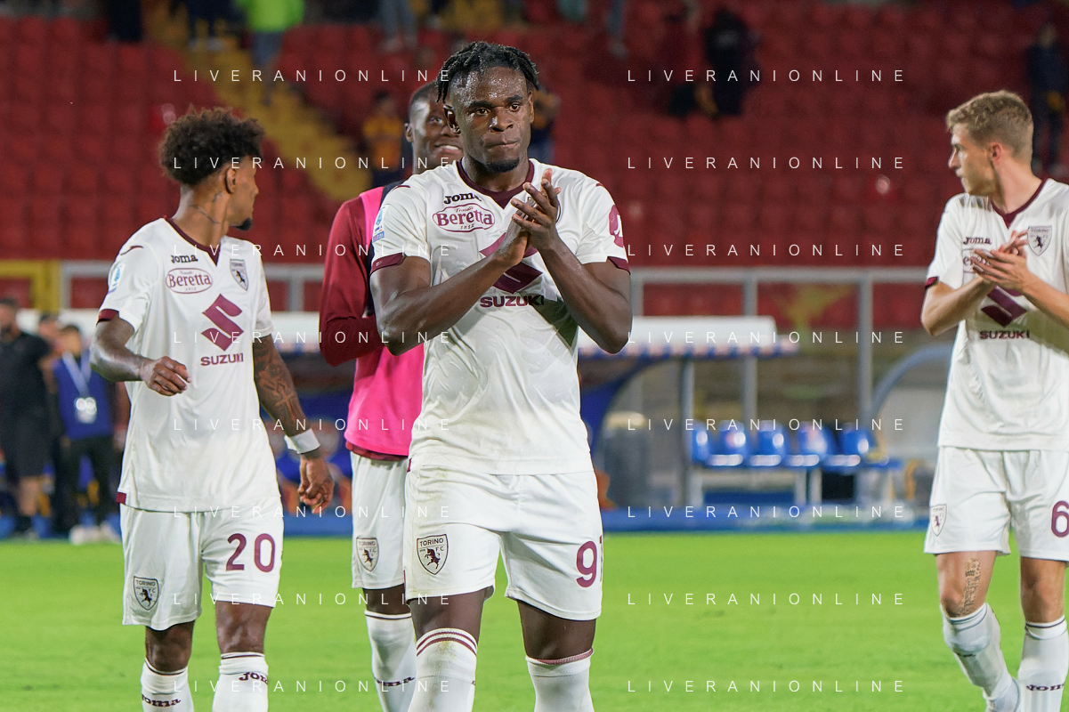 Duvan Zapata of Torino FC applauds fans during the Italian soccer Serie A match US Lecce vs Torino FC on October 28, 2023 at Via del Mare Stadium in Lecce, Italy. Photo by Emmanuele Mastrodonato/ag. Aldo Liverani sas