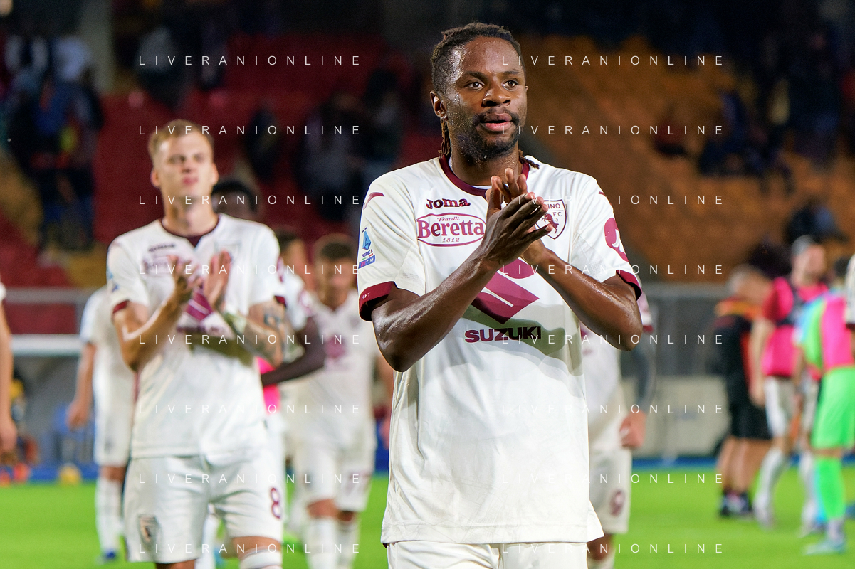 Adrien Tameze of Torino FC applauds fans during the Italian soccer Serie A match US Lecce vs Torino FC on October 28, 2023 at Via del Mare Stadium in Lecce, Italy. Photo by Emmanuele Mastrodonato/ag. Aldo Liverani sas