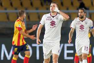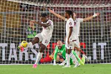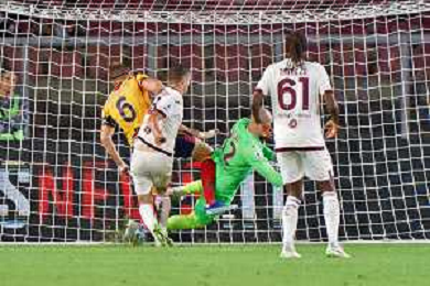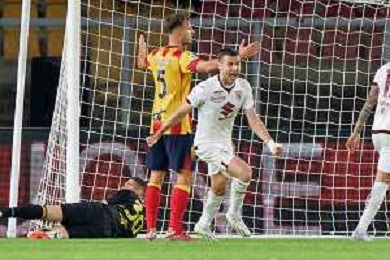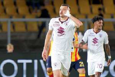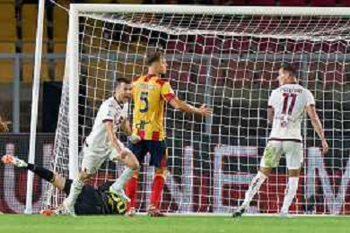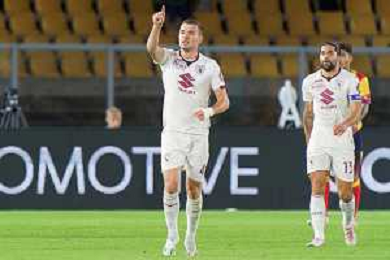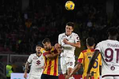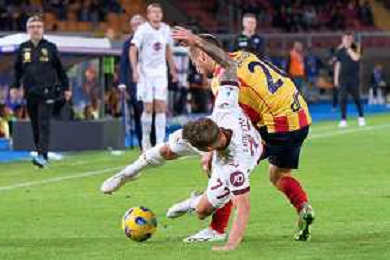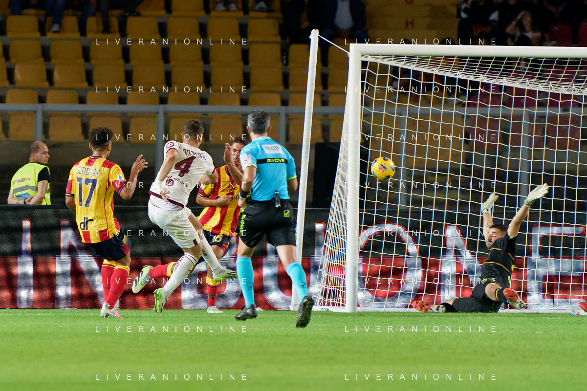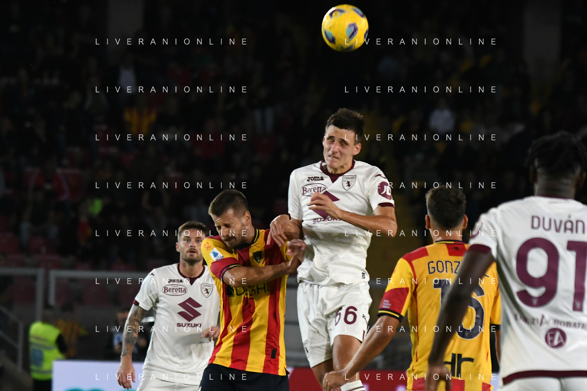 Alessandro Buongiorno of Torino FC scores a goal of 0-1 during the Italian soccer Serie A match US Lecce vs Torino FC on October 28, 2023 at Via del Mare Stadium in Lecce, Italy. Photo by Emmanuele Mastrodonato/ag. Aldo Liverani sas