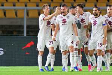 Torino FC applauds fans during the Italian soccer Serie A match US Lecce vs Torino FC on October 28, 2023 at Via del Mare Stadium in Lecce, Italy. Photo by Emmanuele Mastrodonato/ag. Aldo Liverani sas