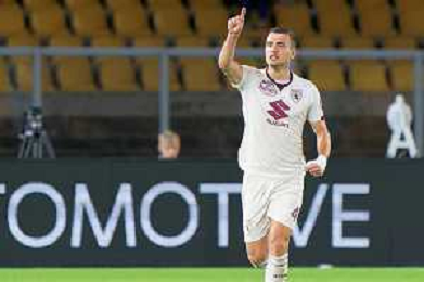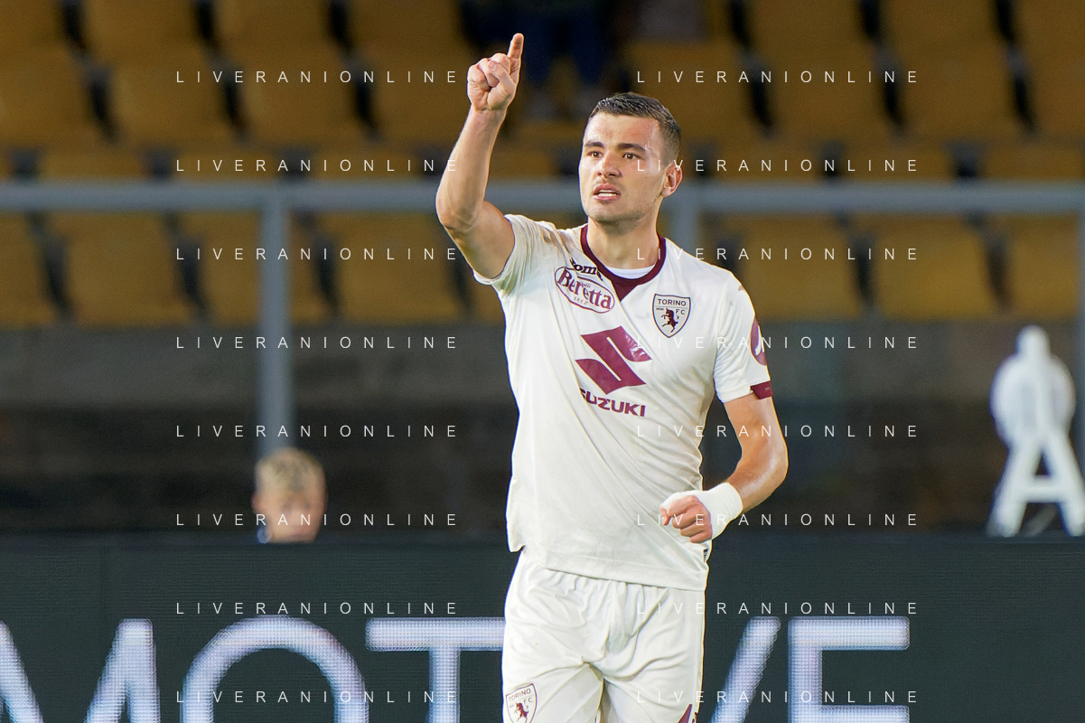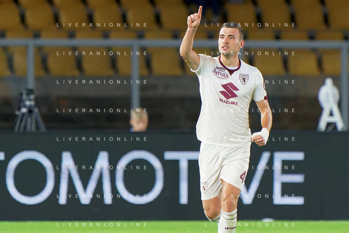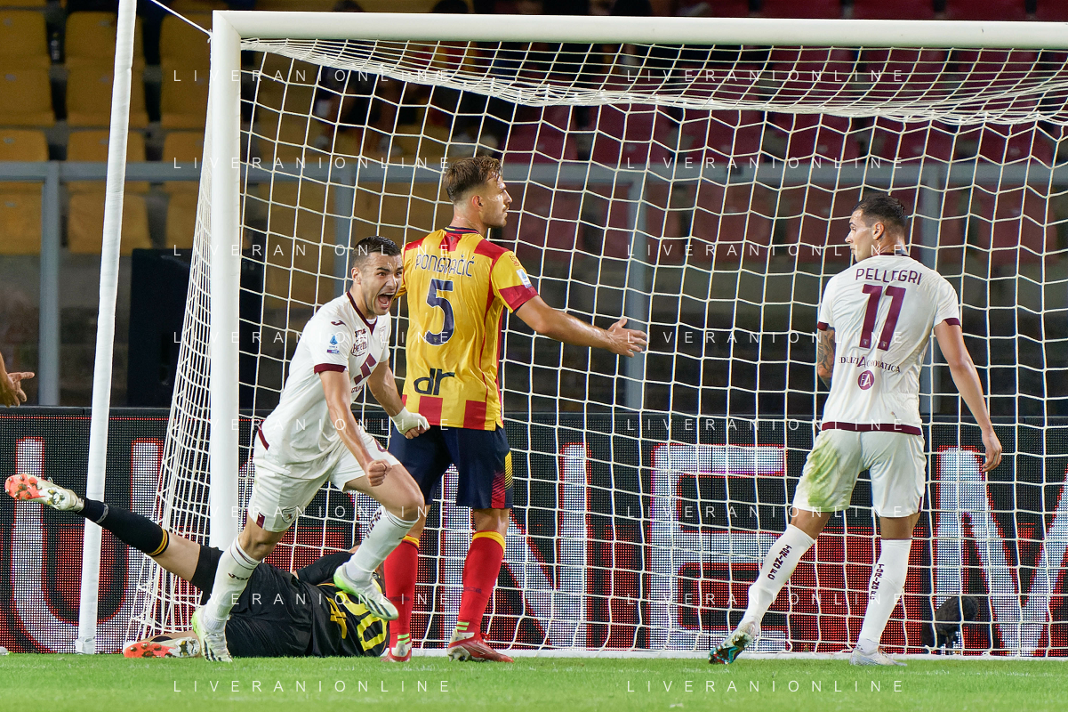 Alessandro Buongiorno of Torino FC celebrates after scoring a goal during the Italian soccer Serie A match US Lecce vs Torino FC on October 28, 2023 at Via del Mare Stadium in Lecce, Italy. Photo by Emmanuele Mastrodonato/ag. Aldo Liverani sas