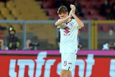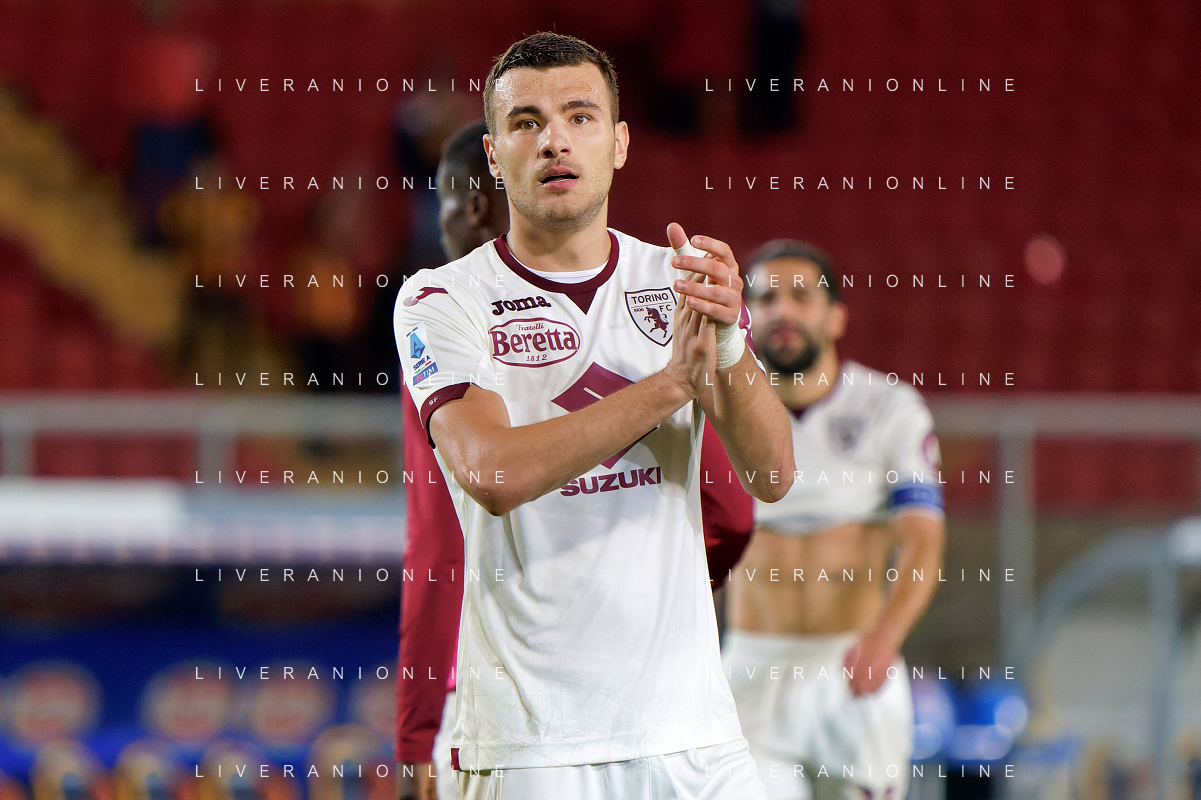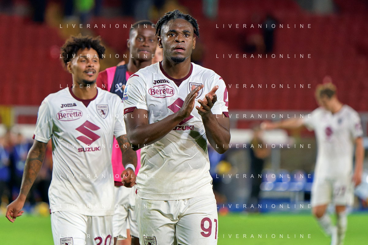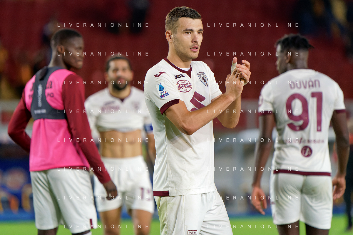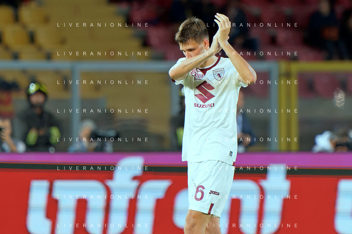 Alessandro Buongiorno of Torino FC applauds fans during the Italian soccer Serie A match US Lecce vs Torino FC on October 28, 2023 at Via del Mare Stadium in Lecce, Italy. Photo by Emmanuele Mastrodonato/ag. Aldo Liverani sas