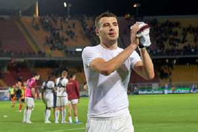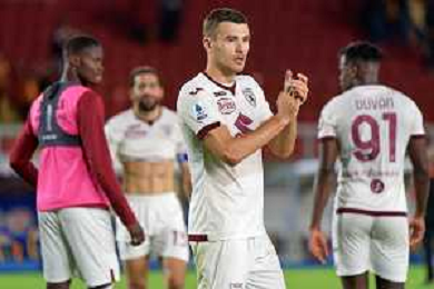 Karol Linetty of Torino FC applauds fans during the Italian soccer Serie A match US Lecce vs Torino FC on October 28, 2023 at Via del Mare Stadium in Lecce, Italy. Photo by Emmanuele Mastrodonato/ag. Aldo Liverani sas