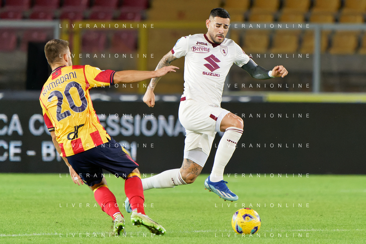 Antonio Sanabria of Torino FC and Ylber Ramadani of US Lecce during the Italian soccer Serie A match US Lecce vs Torino FC on October 28, 2023 at Via del Mare Stadium in Lecce, Italy. Photo by Emmanuele Mastrodonato/ag. Aldo Liverani sas