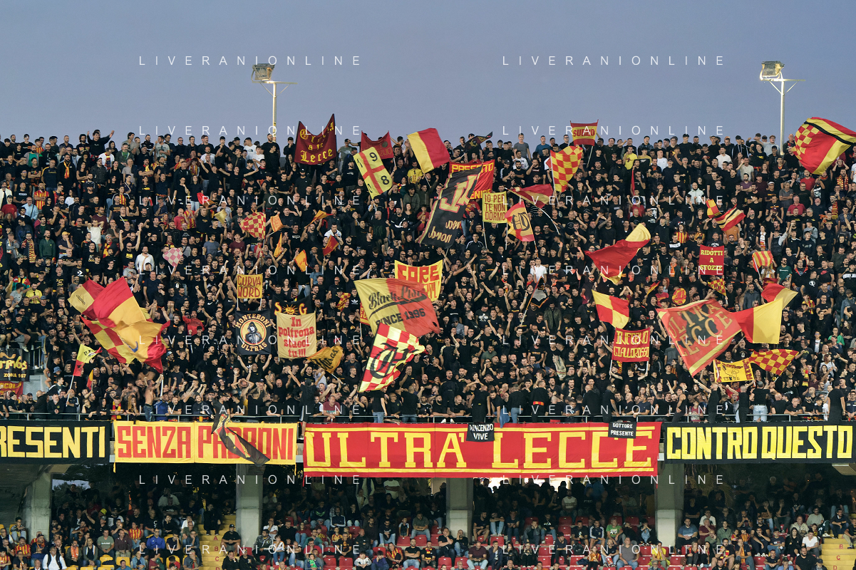 Supporters of US Lecce during the Italian soccer Serie A match US Lecce vs Torino FC on October 28, 2023 at Via del Mare Stadium in Lecce, Italy. Photo by Emmanuele Mastrodonato/ag. Aldo Liverani sas
