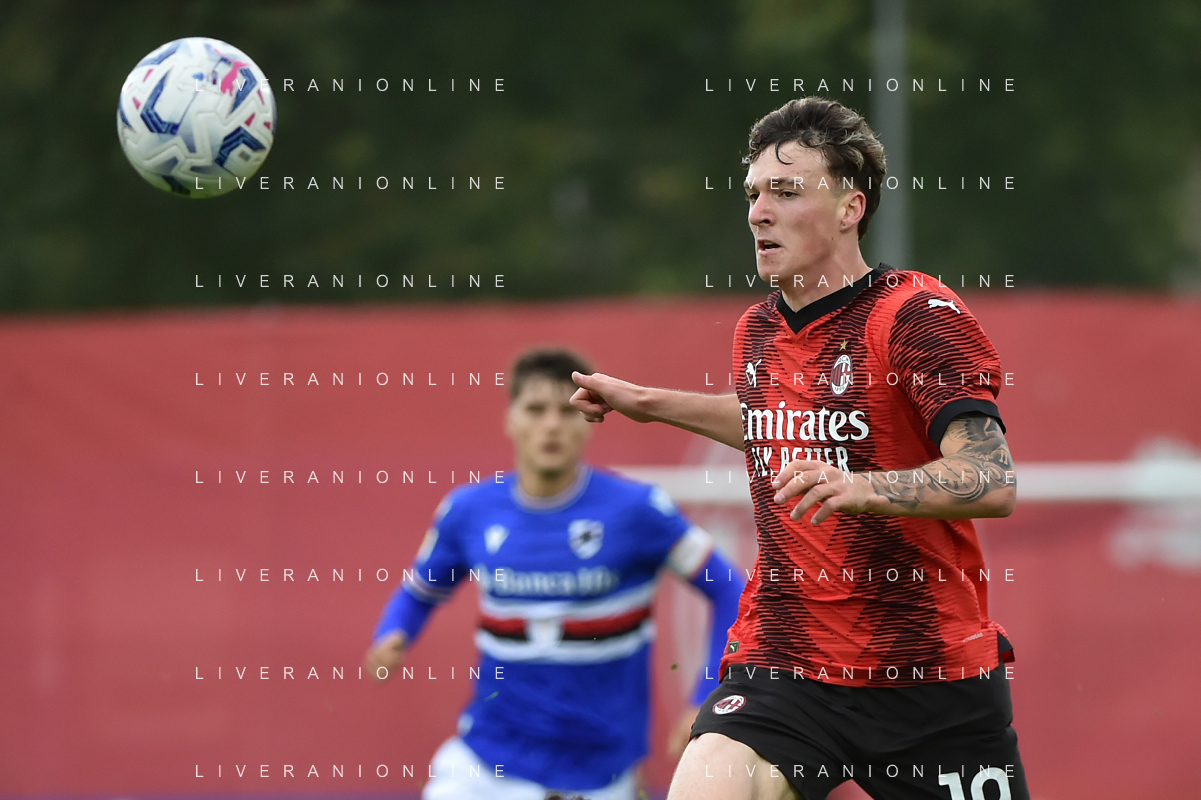 TVRG Milan vs Sampdoria nella foto Alessandro Bonomi (Milan) Milano 29-10-2023 Puma House of Football - centro sportivo Peppino Vismara Campionato Primavera 1 TIM - 8a giornata foto Roberto Garavaglia/ag. Aldo Liverani sas