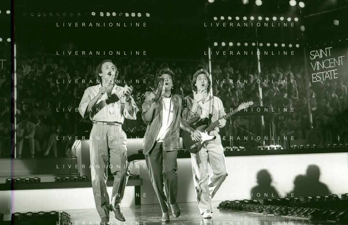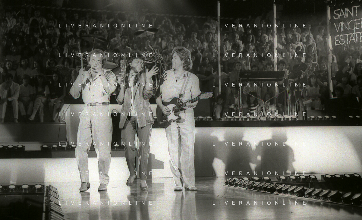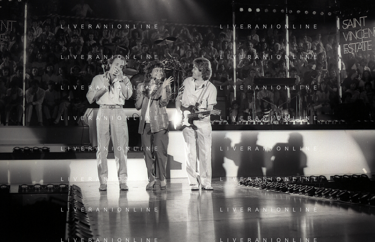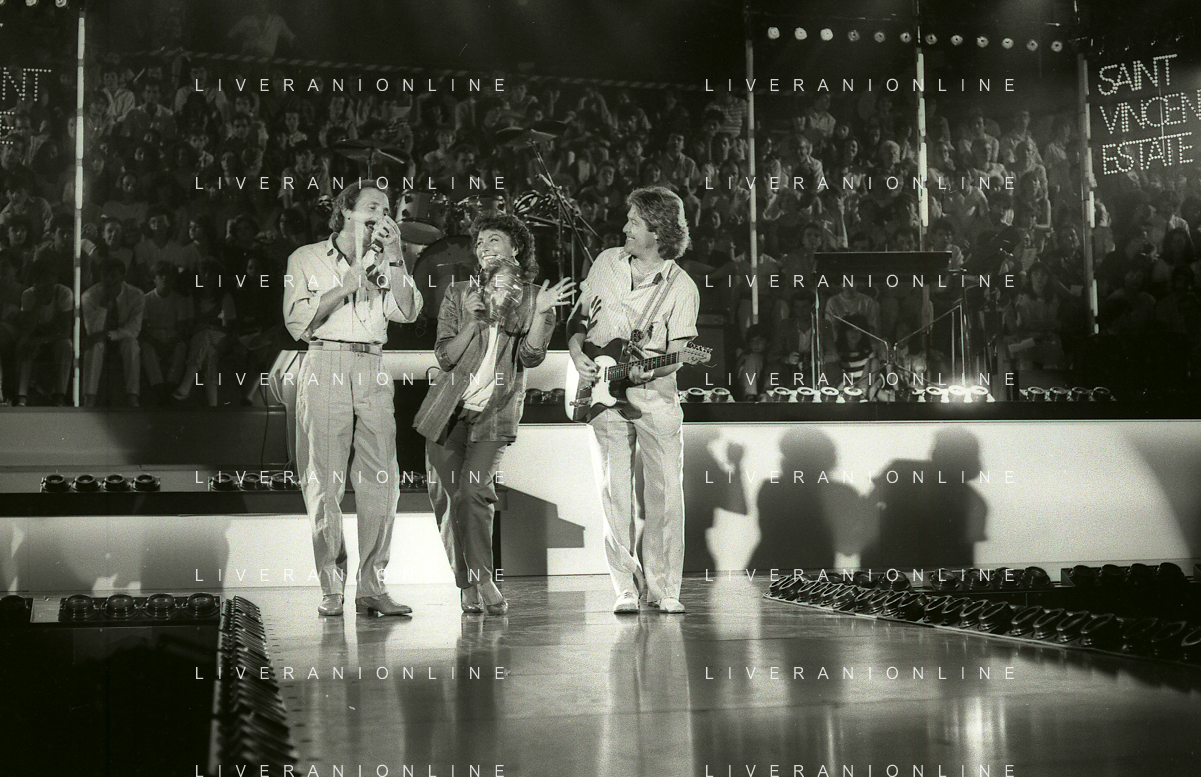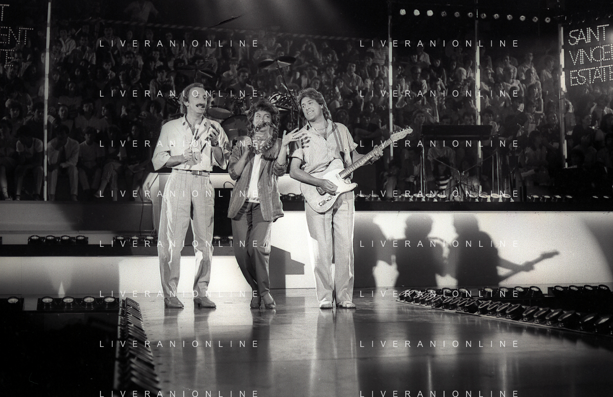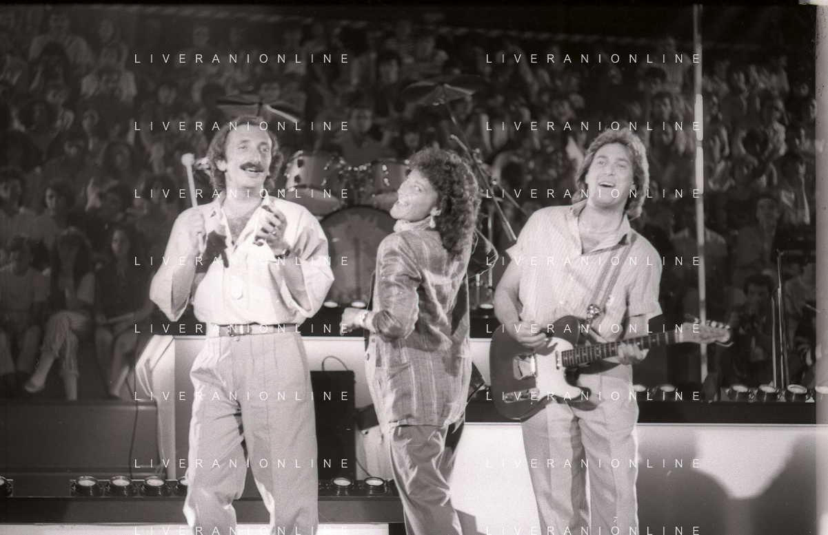 NEG-RETROSPETTIVA COMPLESSO MUSICALE RICCHIE POVERI NELLA FOTO IL COMPLESSO MUSICALE DEI RICCHI E POVERI A SAINT VINCENT ESTATE NELL'ANNO 1986 AG ALDO LIVERANI SAS
