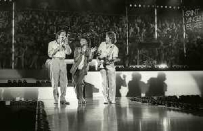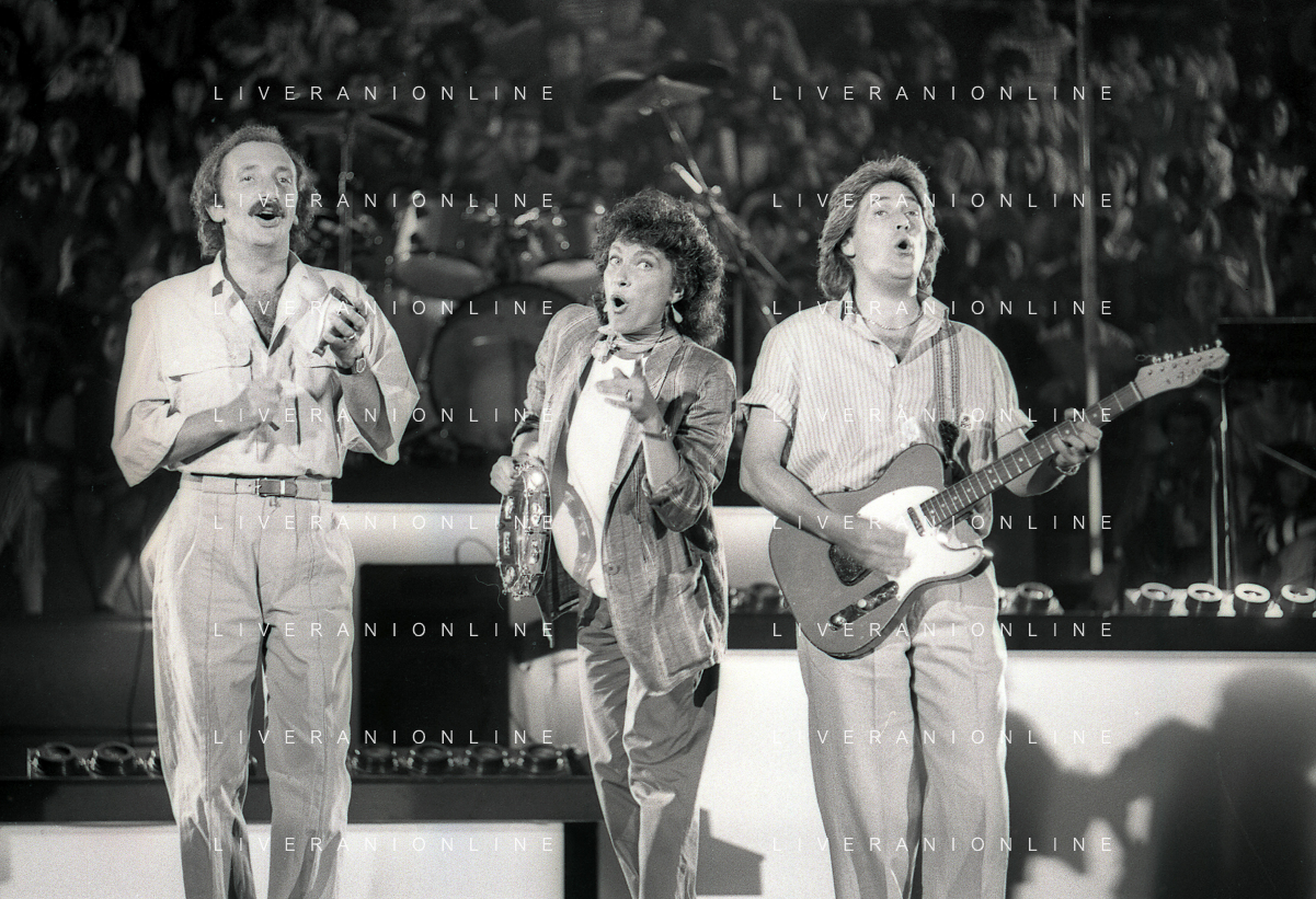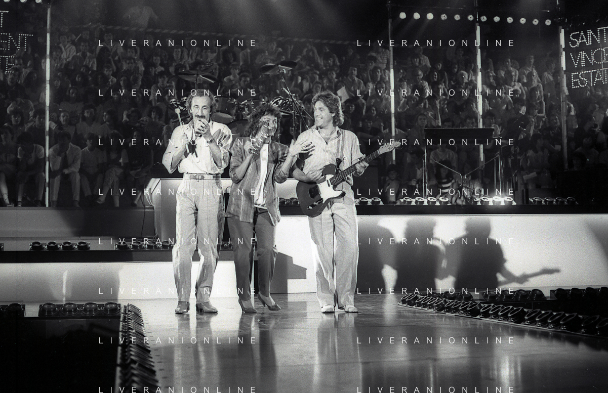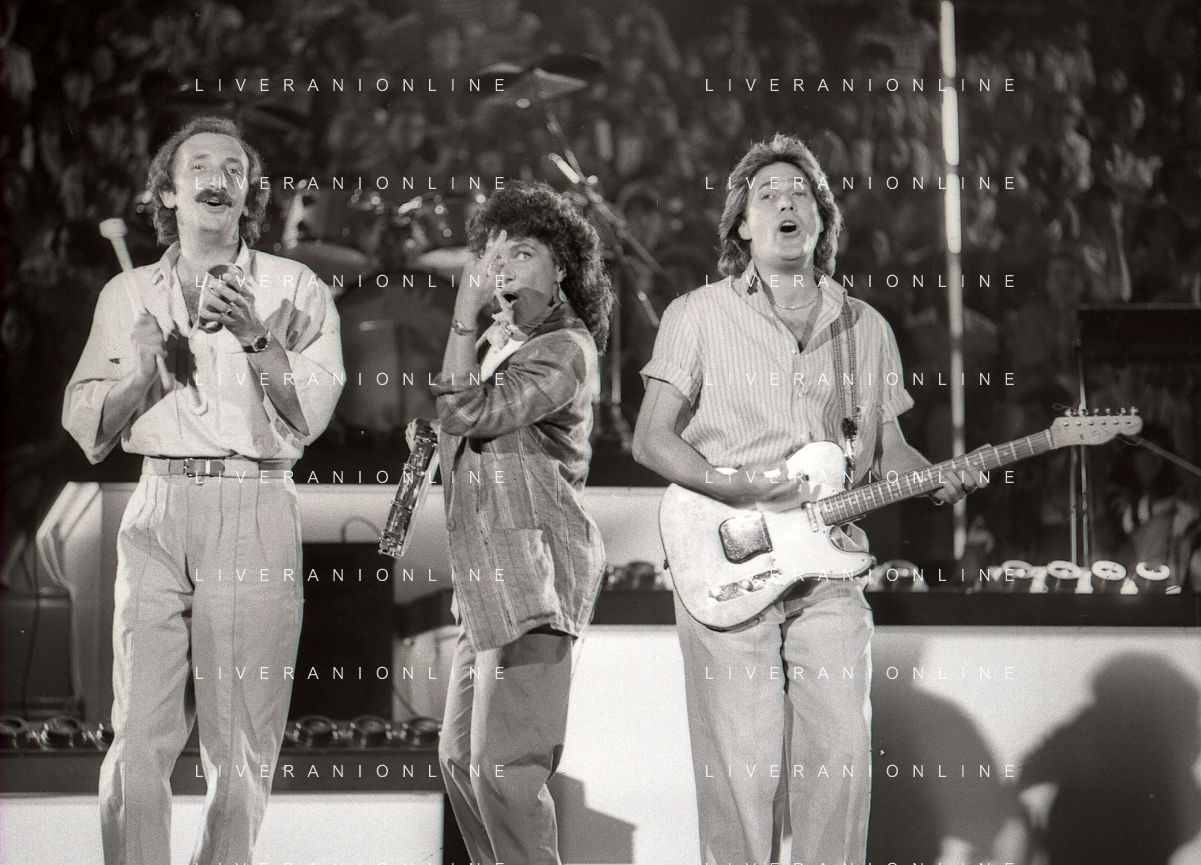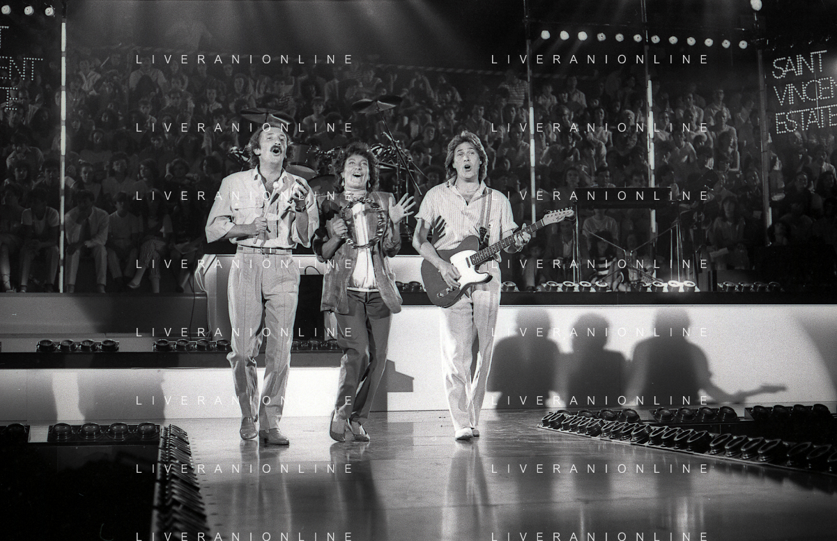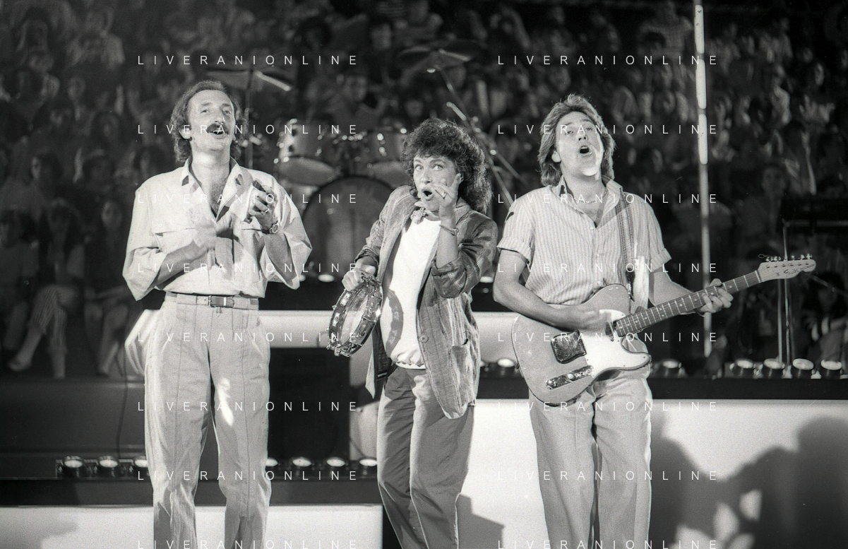 NEG-RETROSPETTIVA COMPLESSO MUSICALE RICCHIE POVERI NELLA FOTO IL COMPLESSO MUSICALE DEI RICCHI E POVERI A SAINT VINCENT ESTATE NELL'ANNO 1986 AG ALDO LIVERANI SAS
