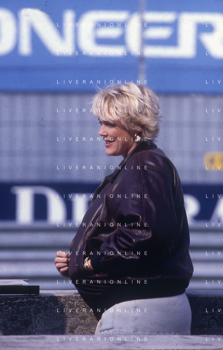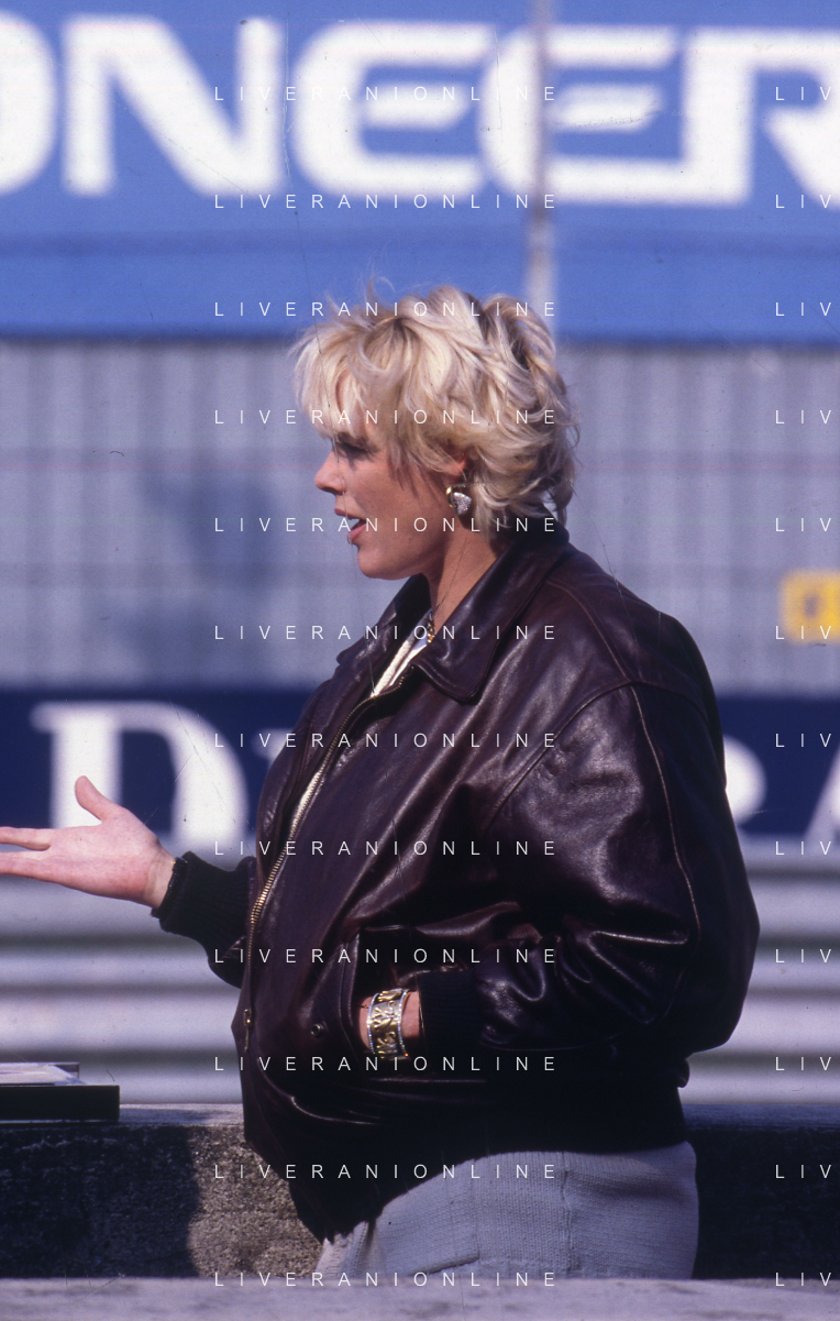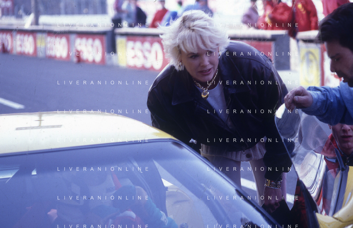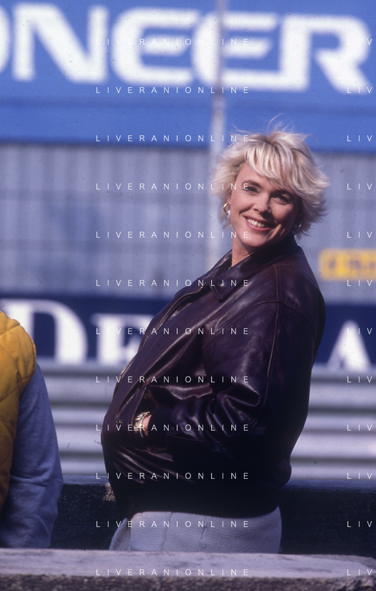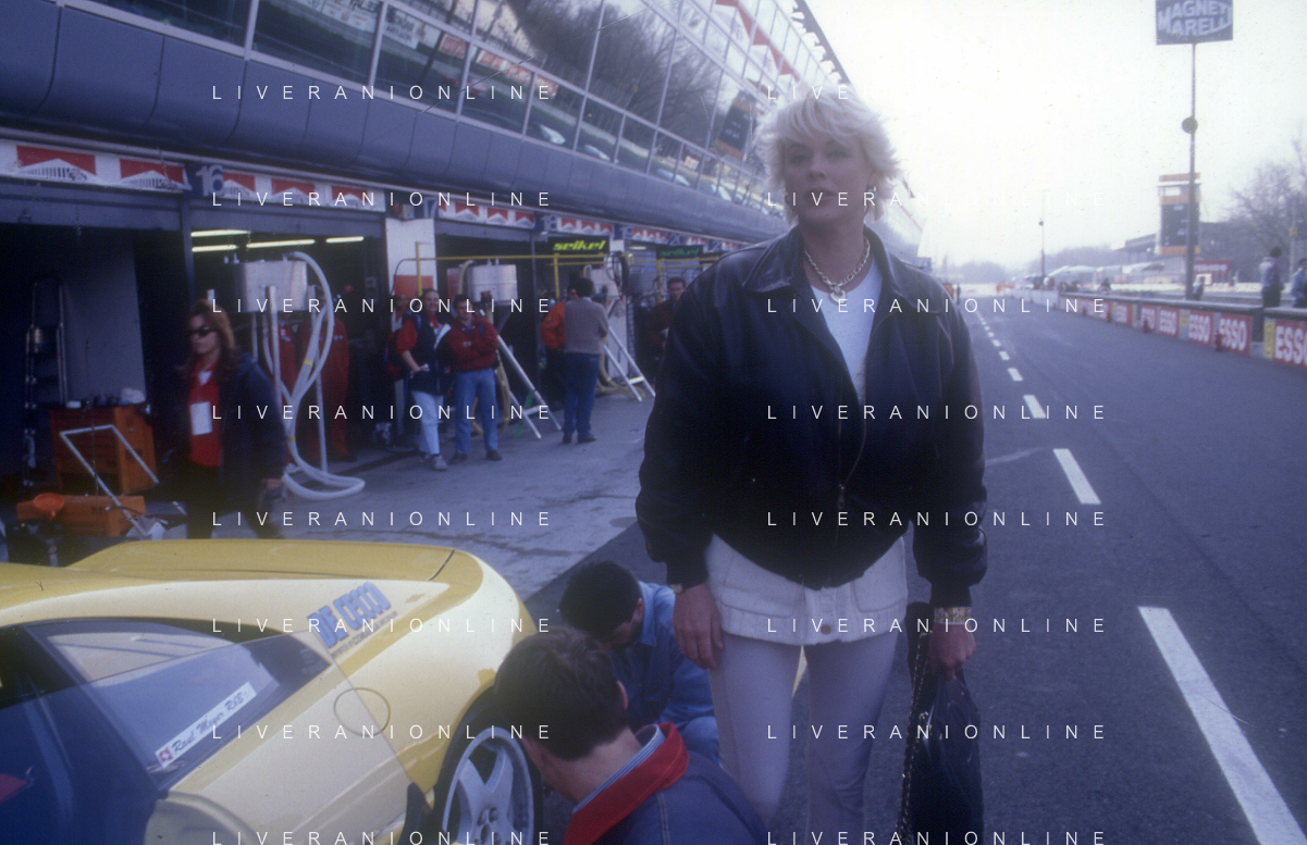 DIAP-RETROSPETTIVA BRIGITTE NIELSEN ATTRICE NELLA FOTO BRIGITTE NIELSEN ALL'AUTODROMO DI MONZA PER LA GARA AUTOMOBILISTICA DEL MARITO RAOUL MEYER AG ALDO LIVERANI SAS