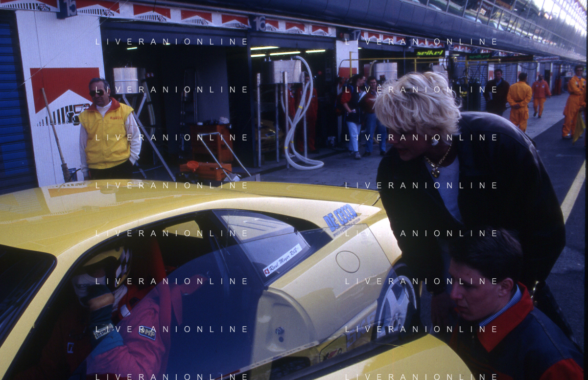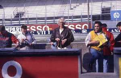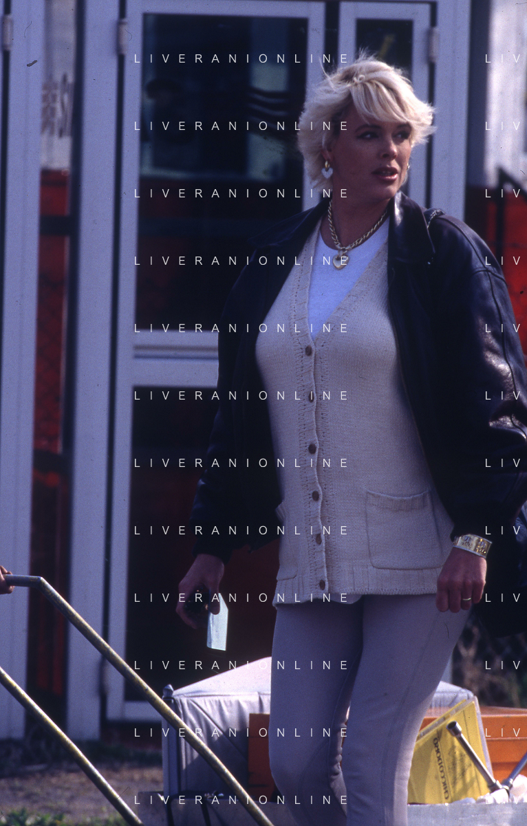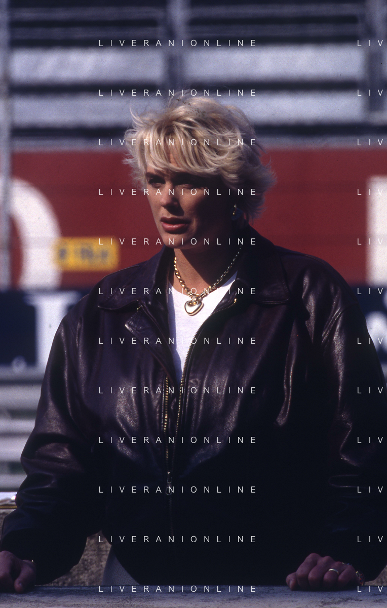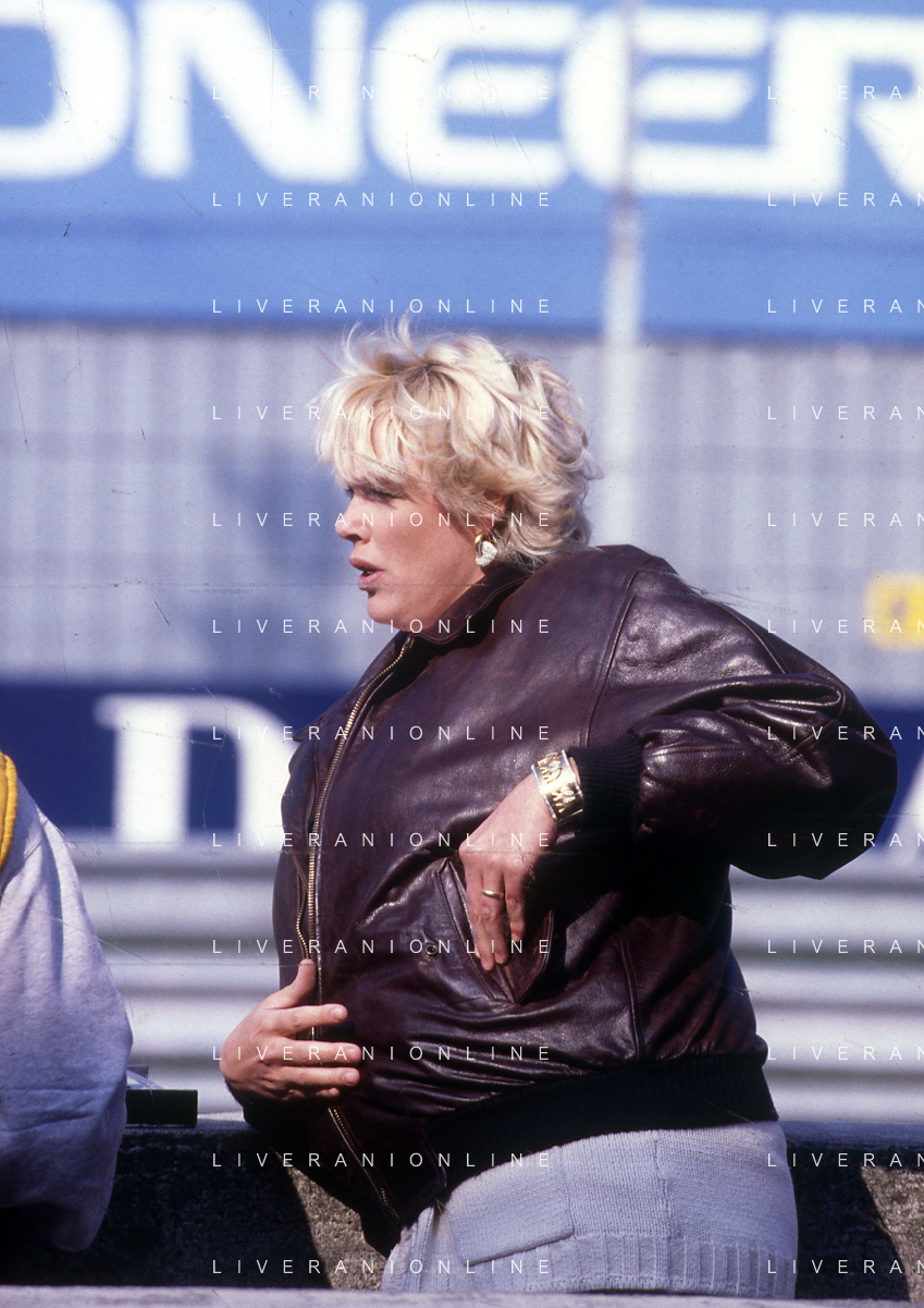 DIAP-RETROSPETTIVA BRIGITTE NIELSEN ATTRICE NELLA FOTO BRIGITTE NIELSEN ALL'AUTODROMO DI MONZA PER LA GARA AUTOMOBILISTICA DEL MARITO RAOUL MEYER AG ALDO LIVERANI SAS