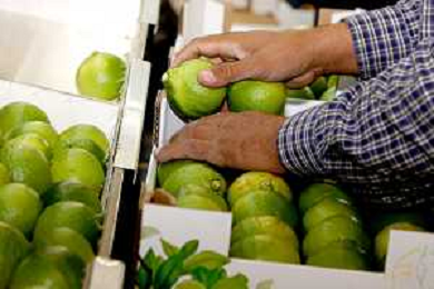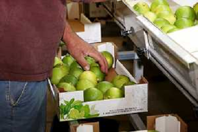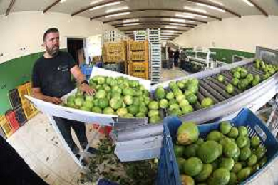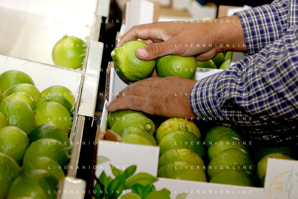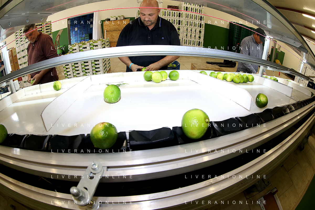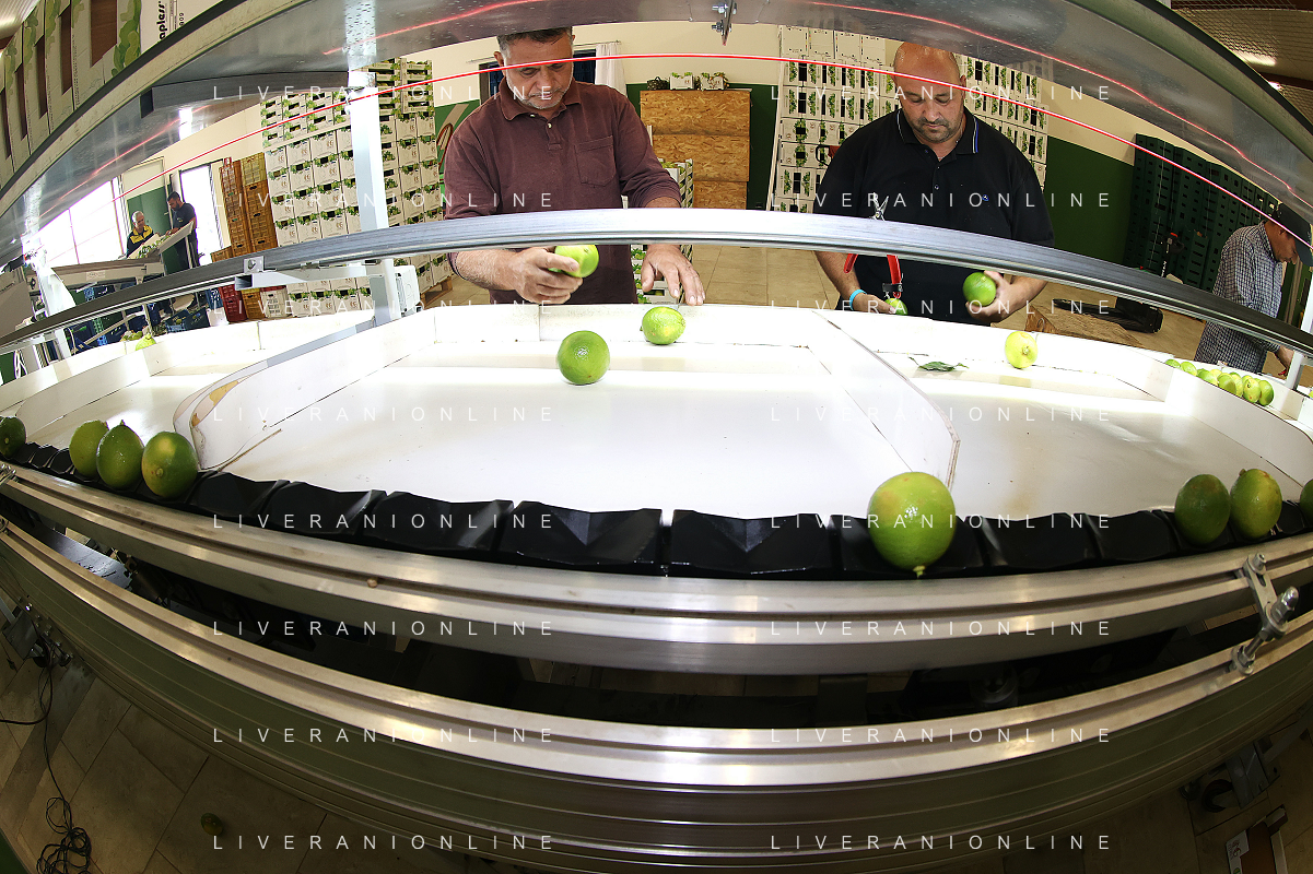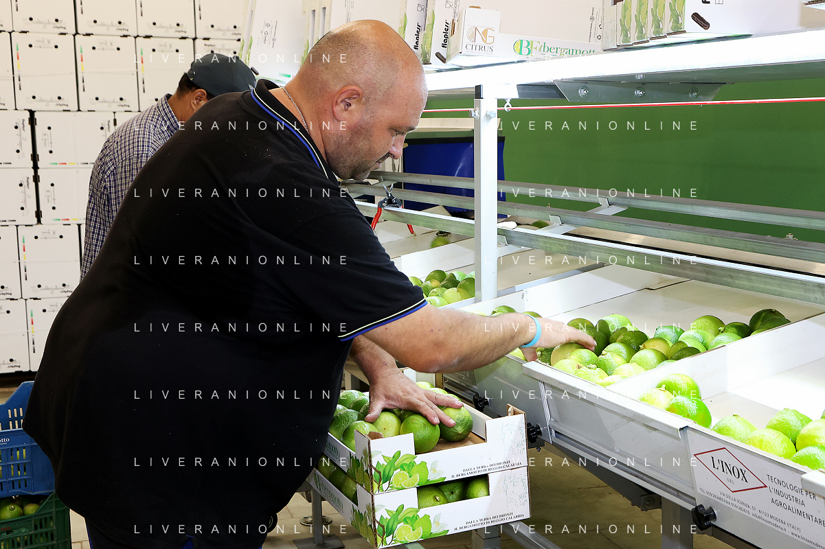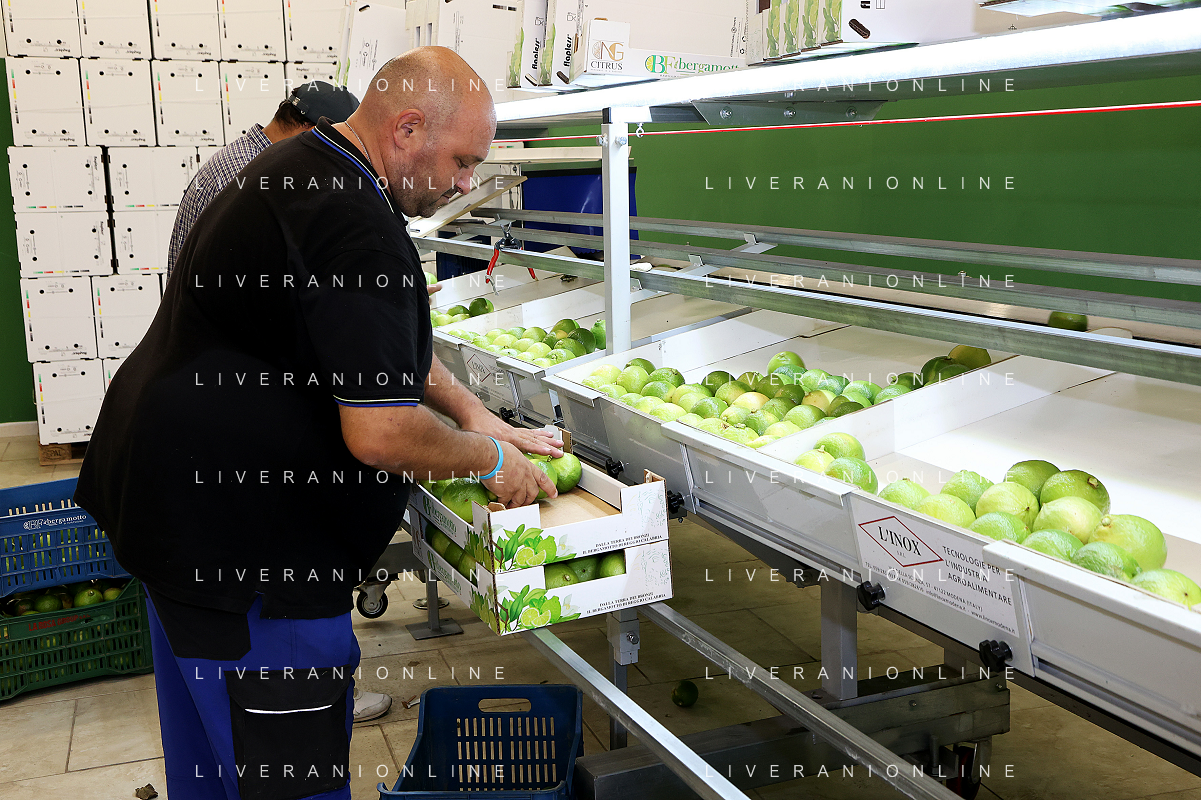 Reggio Calabria 01/11/2023 Località Aretina. Azienda Agricola Bergamotto Fortugno. In foto: Operai sistemano nelle cassette il Bergamotto selezionato dalla macchina per peso. FOTO PASQUALE GAREFFA-AG ALDO LIVERANI SAS