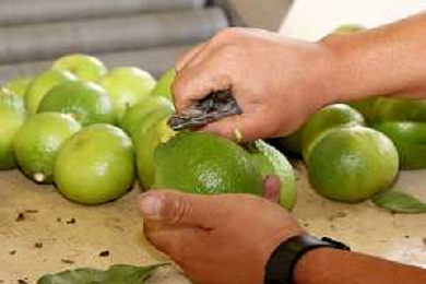 Reggio Calabria 01/11/2023 Località Aretina. Azienda Agricola Bergamotto Fortugno. In foto: Operai manualmente riducono il picciolo che, in cassetta, durante il trasporto, potrebbe rovinare il frutto FOTO PASQUALE GAREFFA-AG ALDO LIVERANI SAS