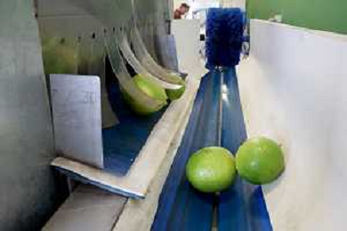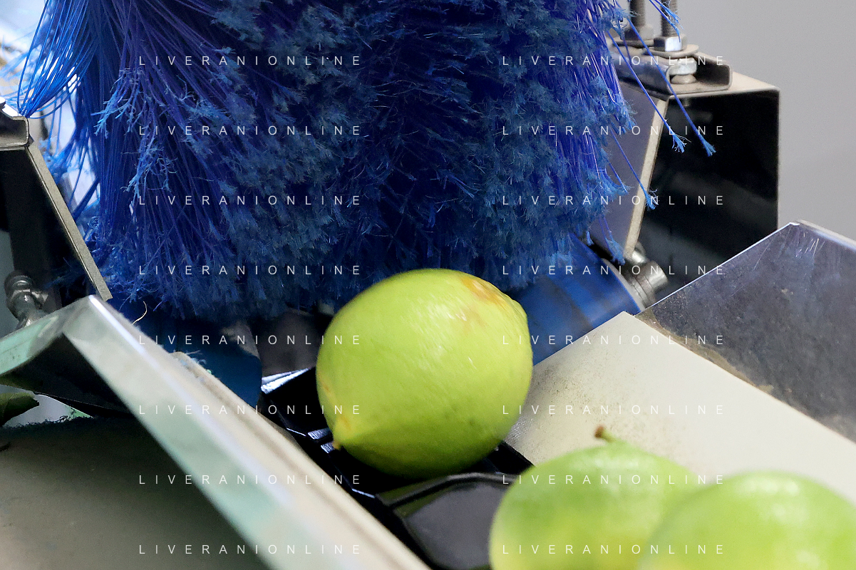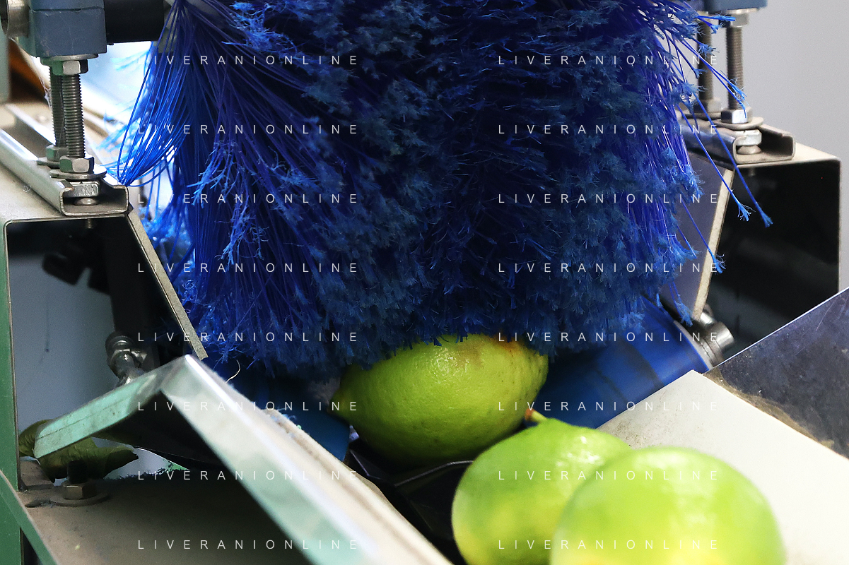 Reggio Calabria 01/11/2023 Località Aretina. Azienda Agricola Bergamotto Fortugno. In foto: il Bergamotto passa sotto una spazzola che provvede ad ulteriore pulizia FOTO PASQUALE GAREFFA-AG ALDO LIVERANI SAS