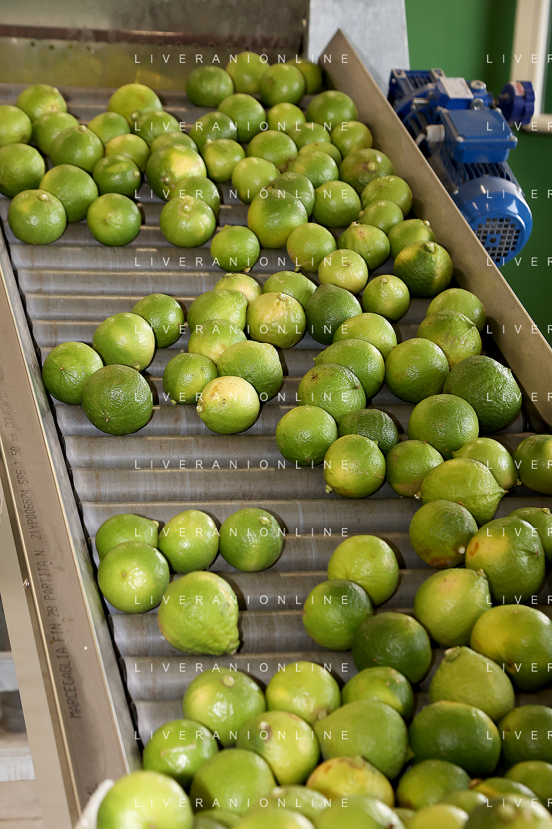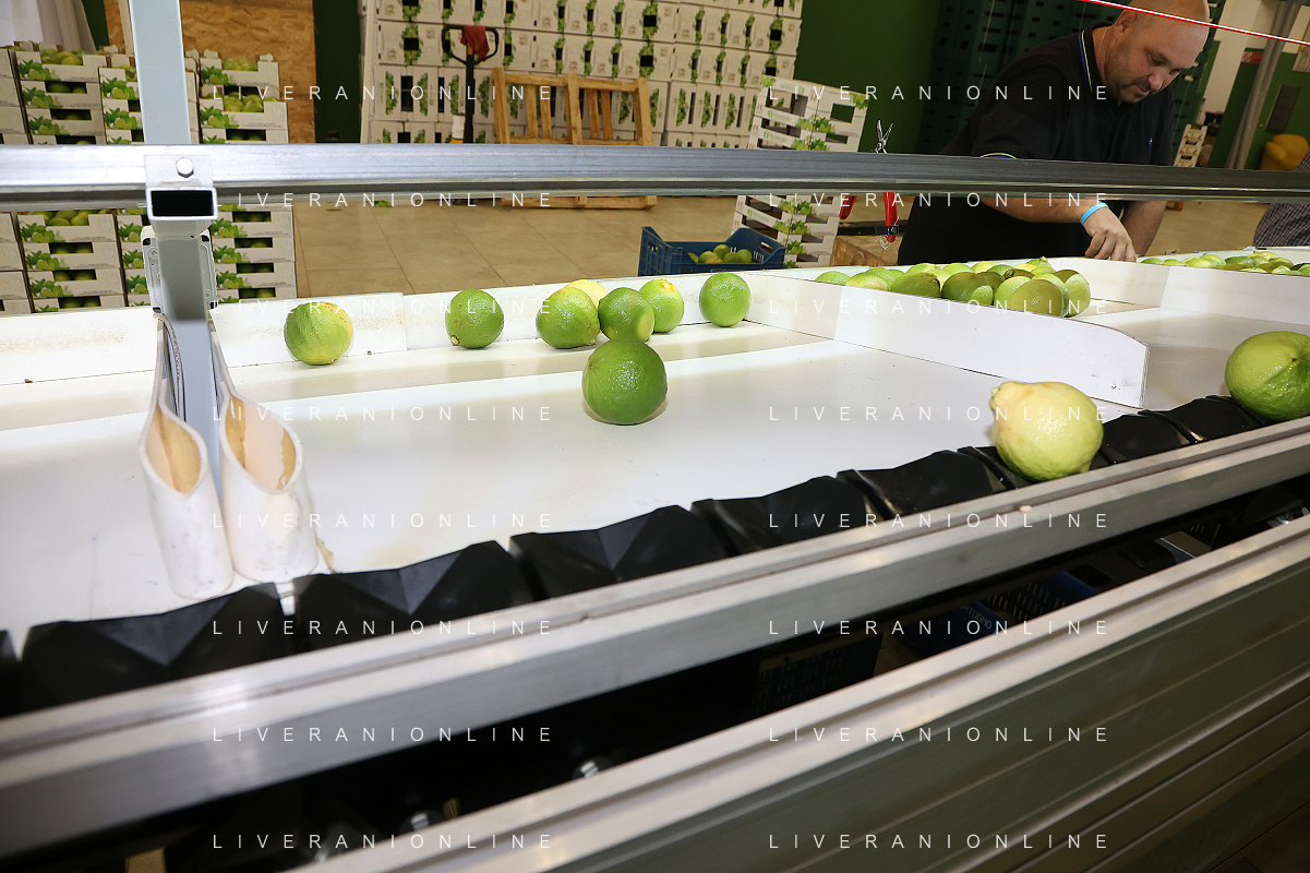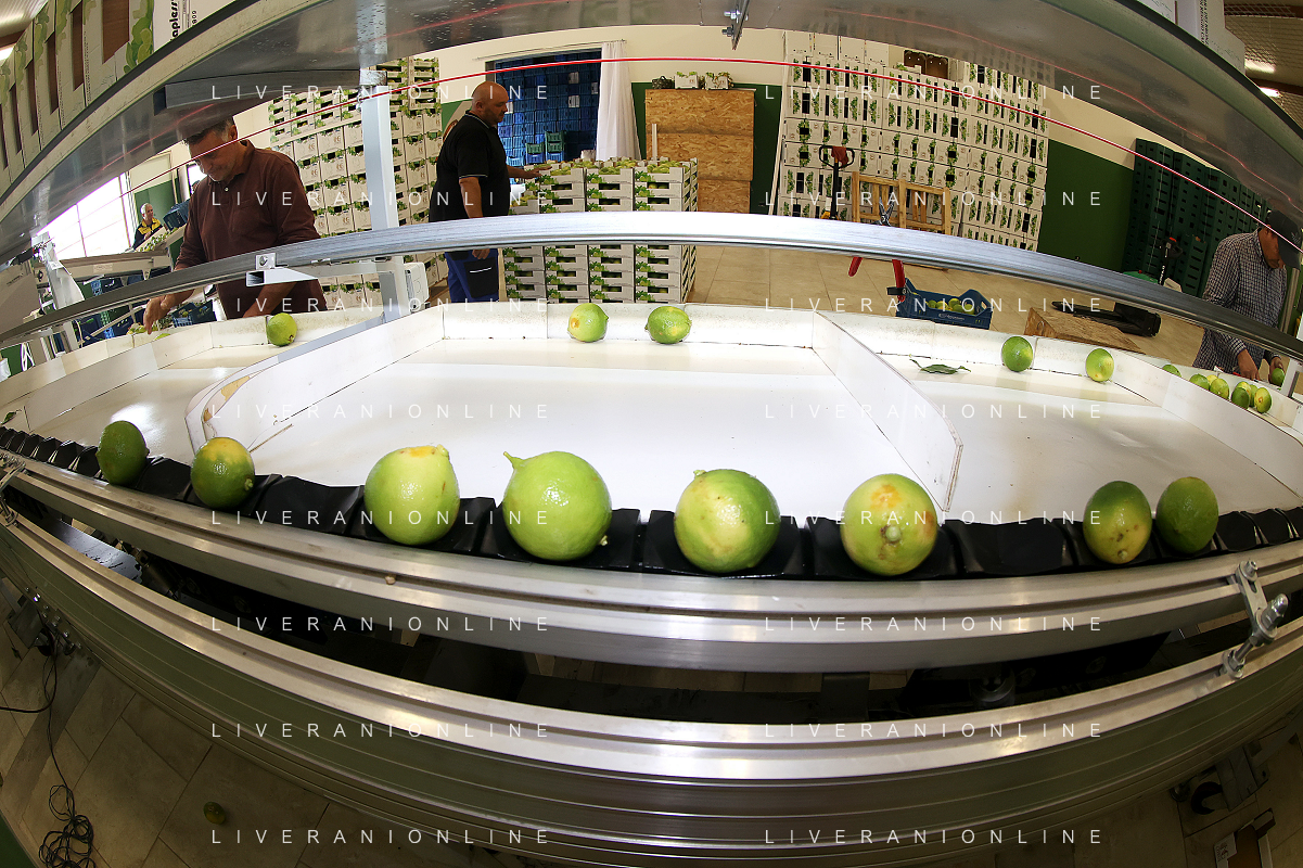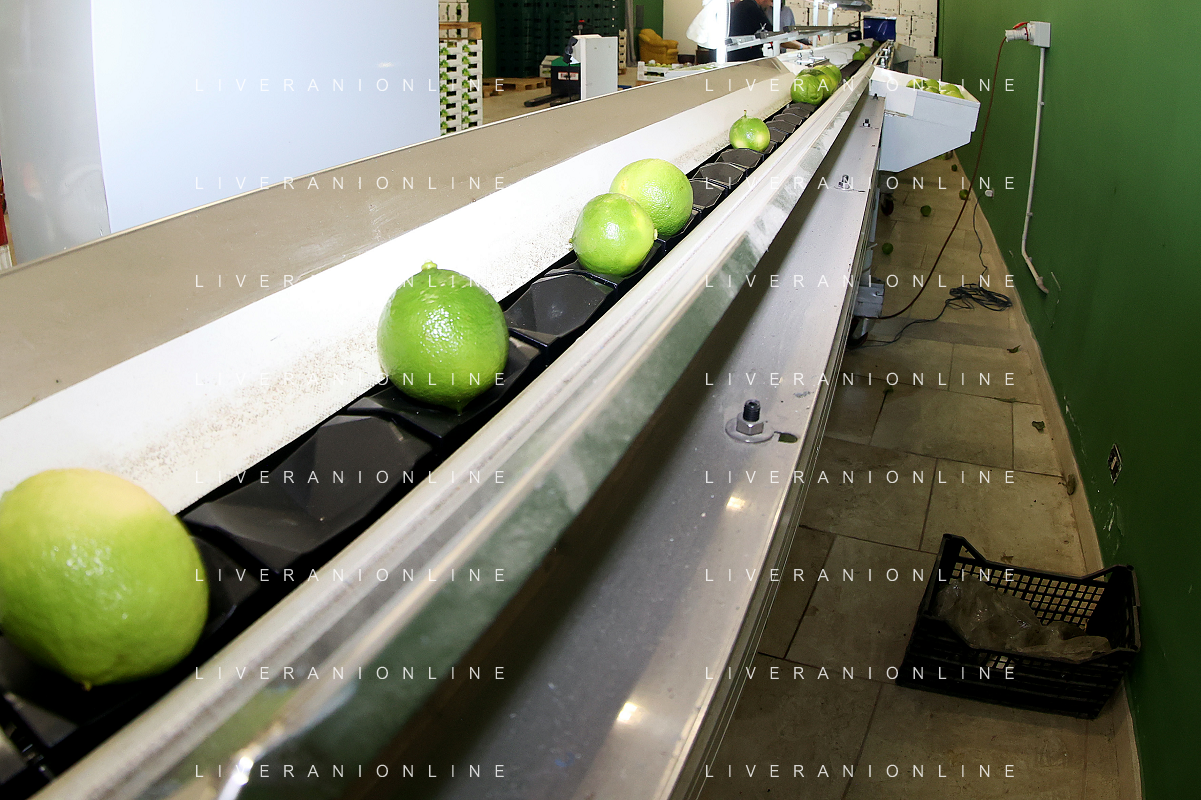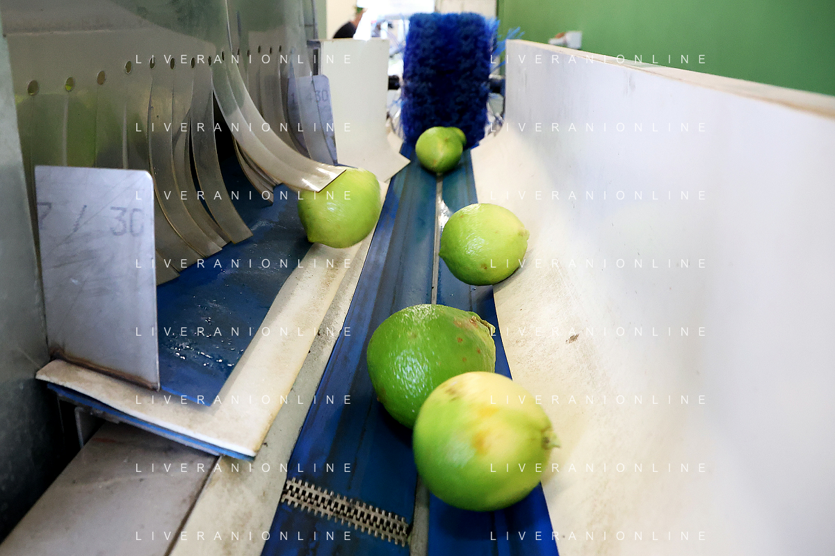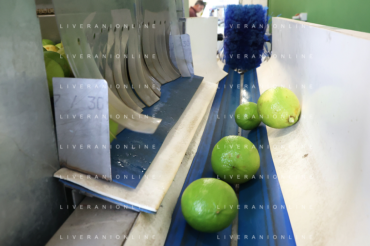 Reggio Calabria 01/11/2023 Località Aretina. Azienda Agricola Bergamotto Fortugno. In foto: il Bergamotto dopo essere stato lavato e asciugato, viene trasportato dal nastro e diviso nei contenitori per peso FOTO PASQUALE GAREFFA-AG ALDO LIVERANI SAS