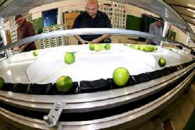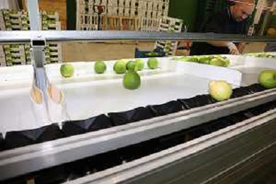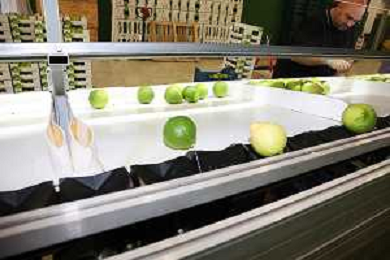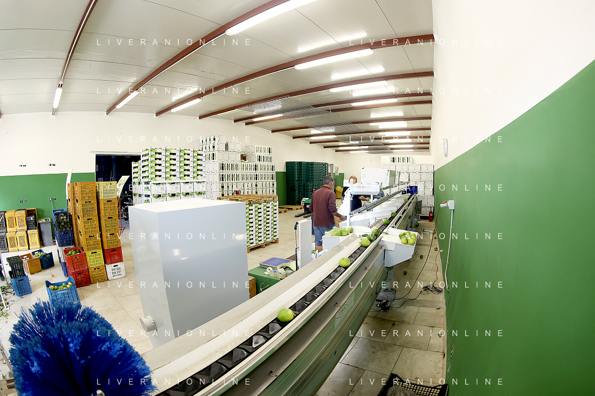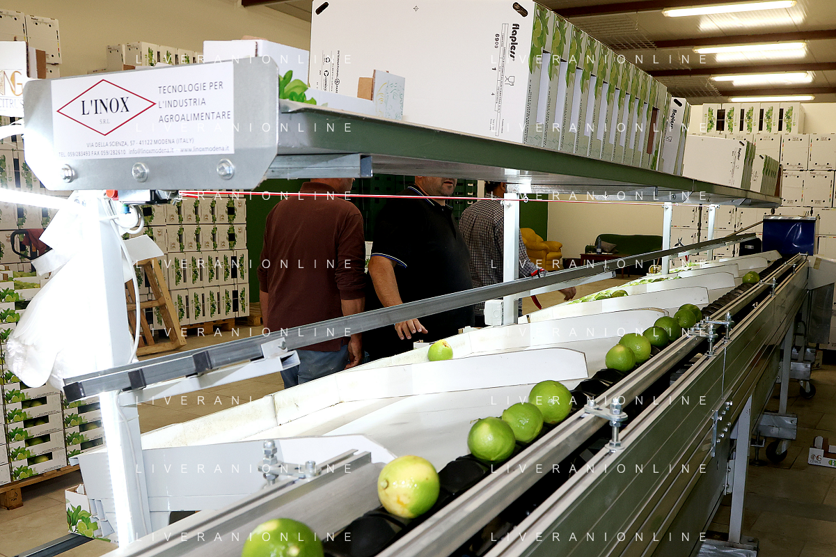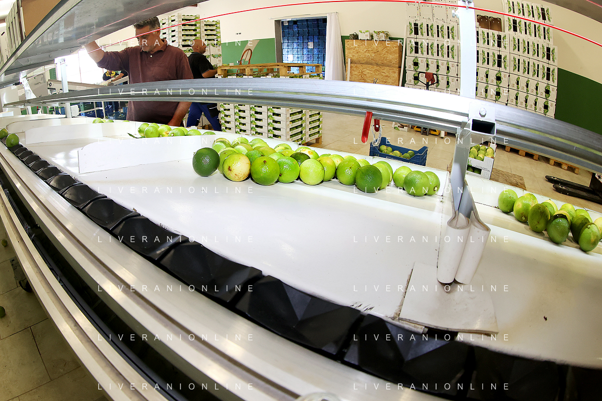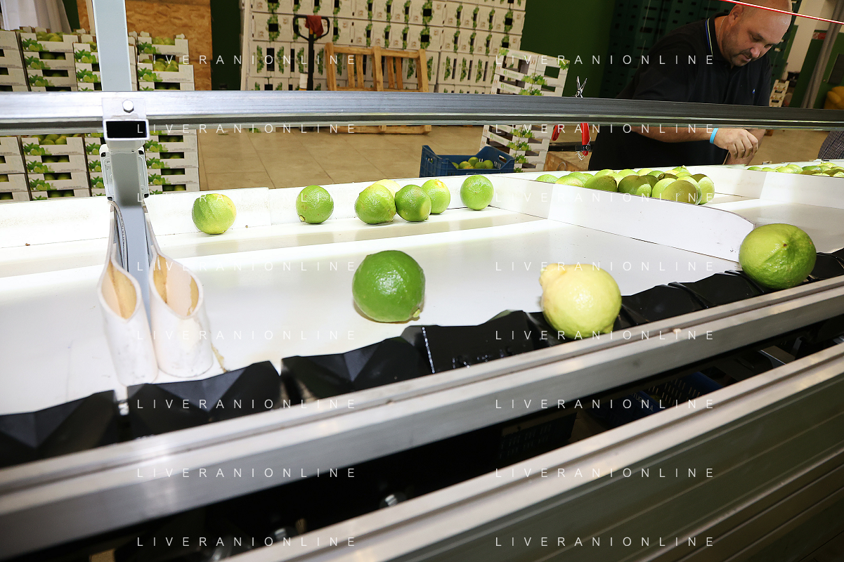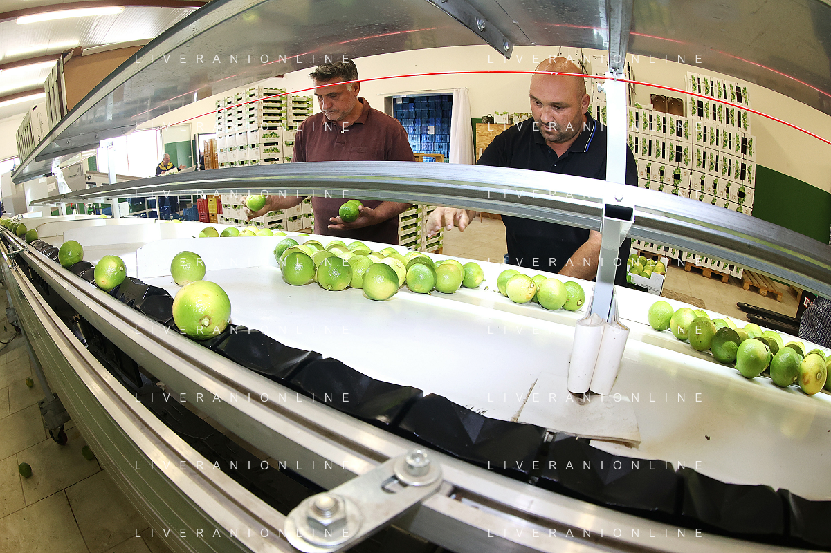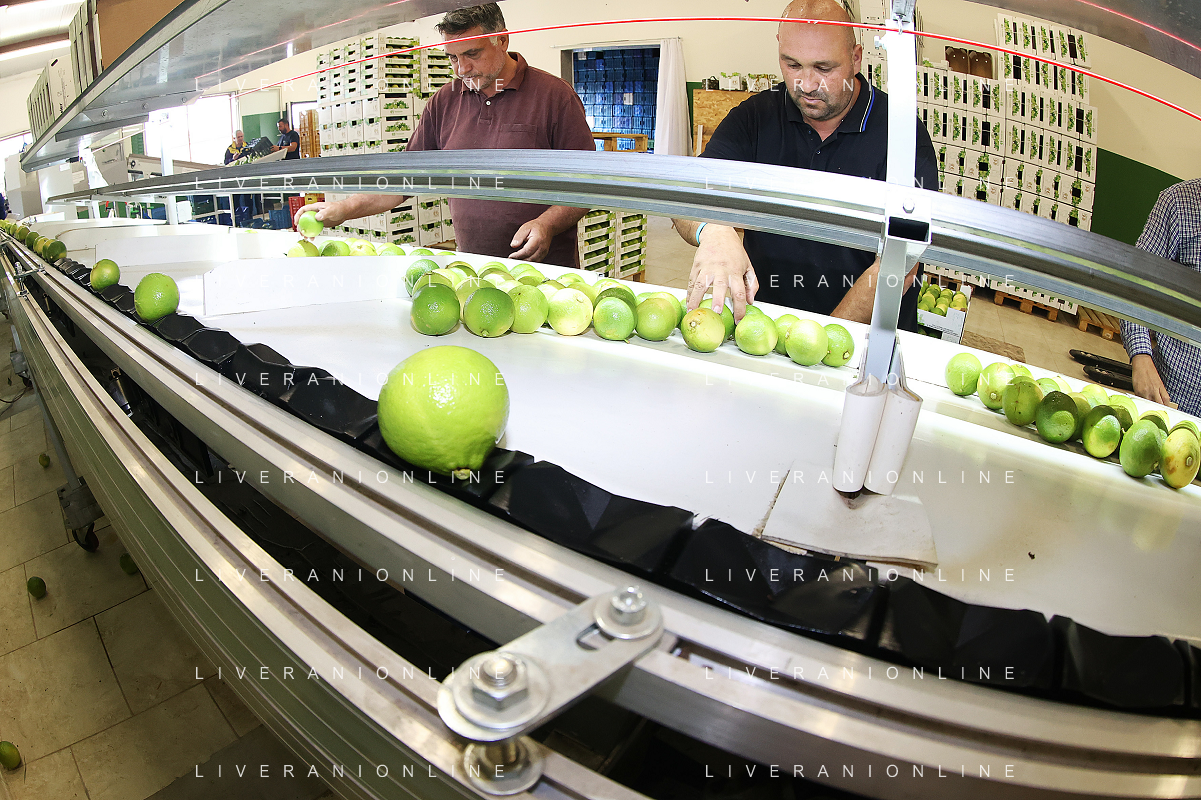 Reggio Calabria 01/11/2023 Località Aretina. Azienda Agricola Bergamotto Fortugno. In foto: il Bergamotto dopo essere stato lavato e asciugato, viene trasportato dal nastro e diviso nei contenitori per peso FOTO PASQUALE GAREFFA-AG ALDO LIVERANI SAS