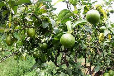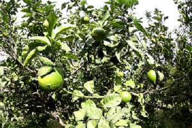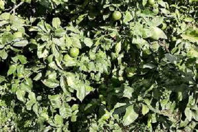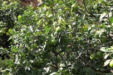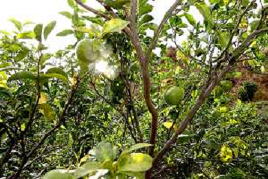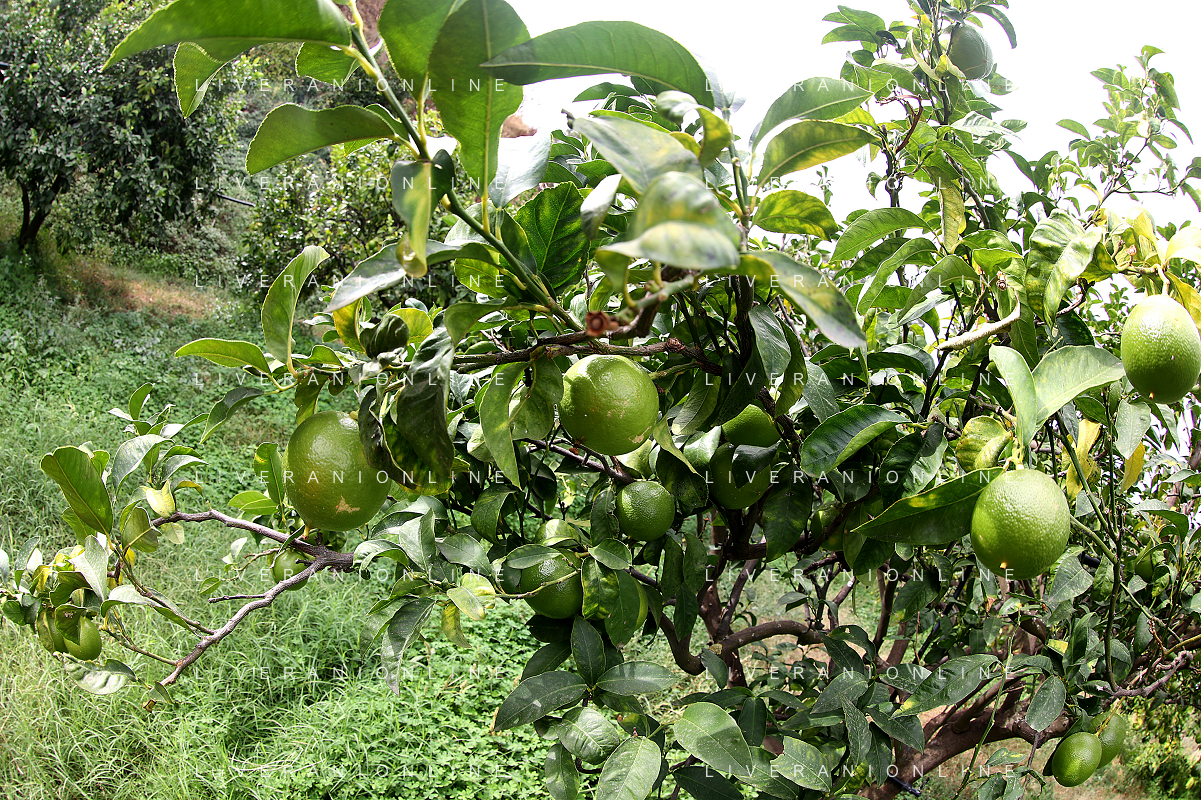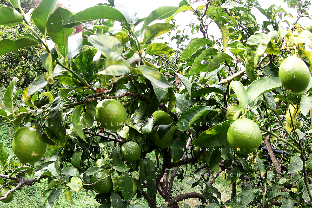 Reggio Calabria 01/11/2023 Località Aretina. Azienda Agricola Bergamotto Fortugno. In foto: particolare di un albero di bergamotto, dove si vede che passa il tubo per l'irrigazione FOTO PASQUALE GAREFFA-AG ALDO LIVERANI SAS