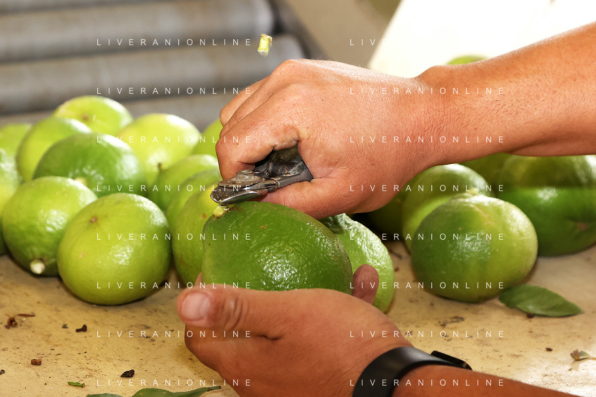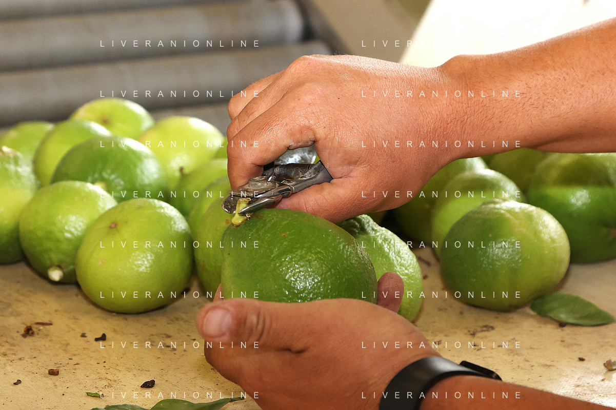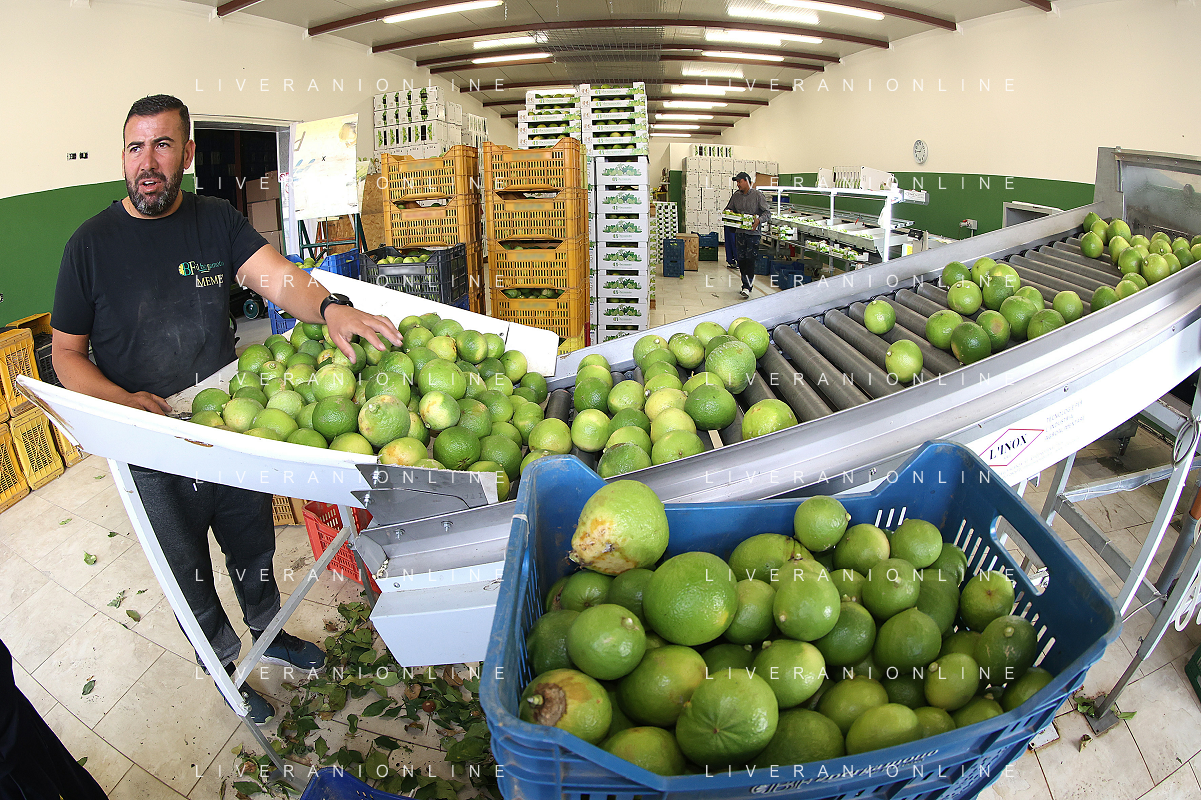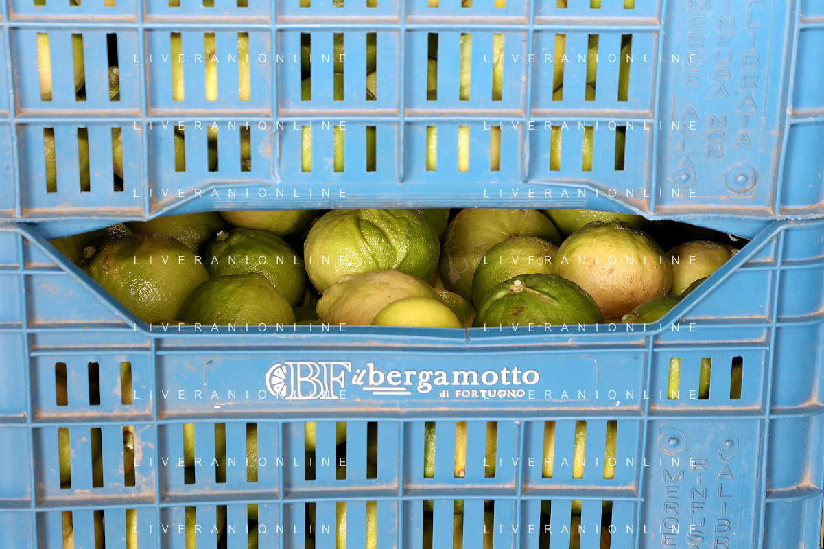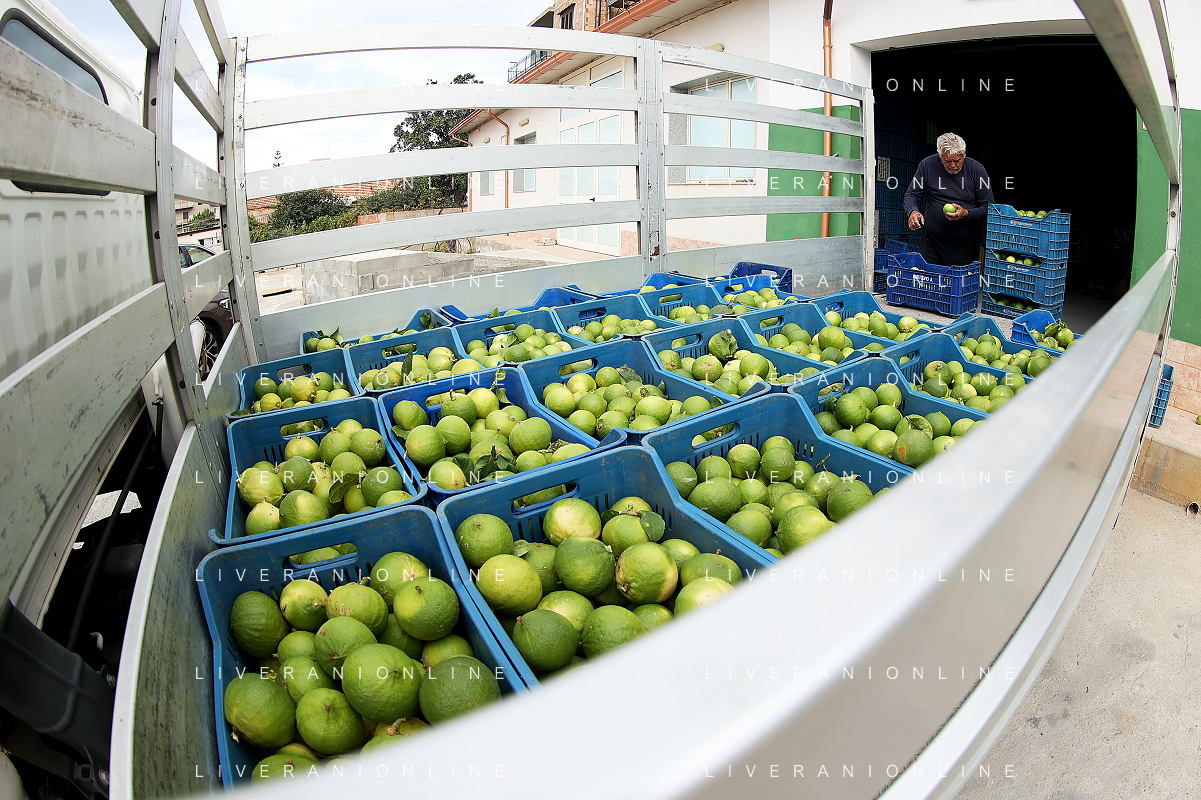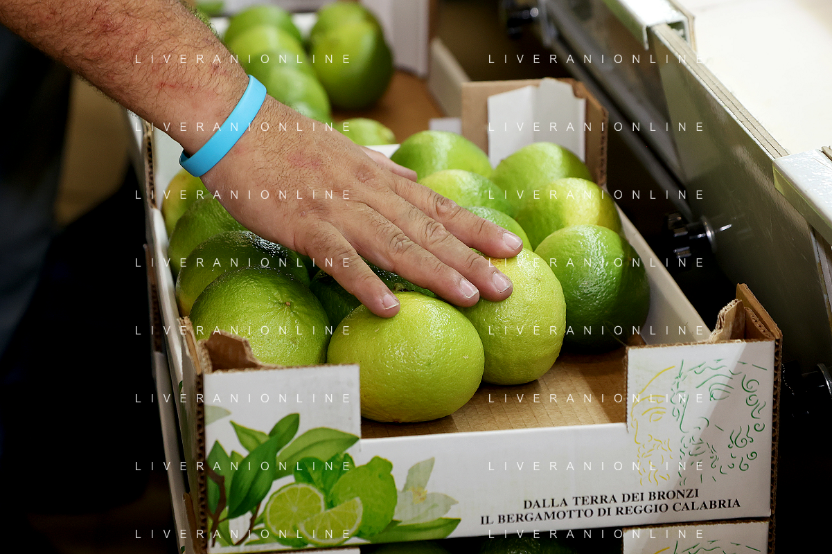 Reggio Calabria 01/11/2023 Località Aretina. Azienda Agricola Bergamotto Fortugno. In foto: per rispettare le commesse, la lavorazione non si ferma neanche nei giorni di festa, una volta raccolto il bergamotto va lavorato e spedito subito FOTO PASQUALE GAREFFA-AG ALDO LIVERANI SAS