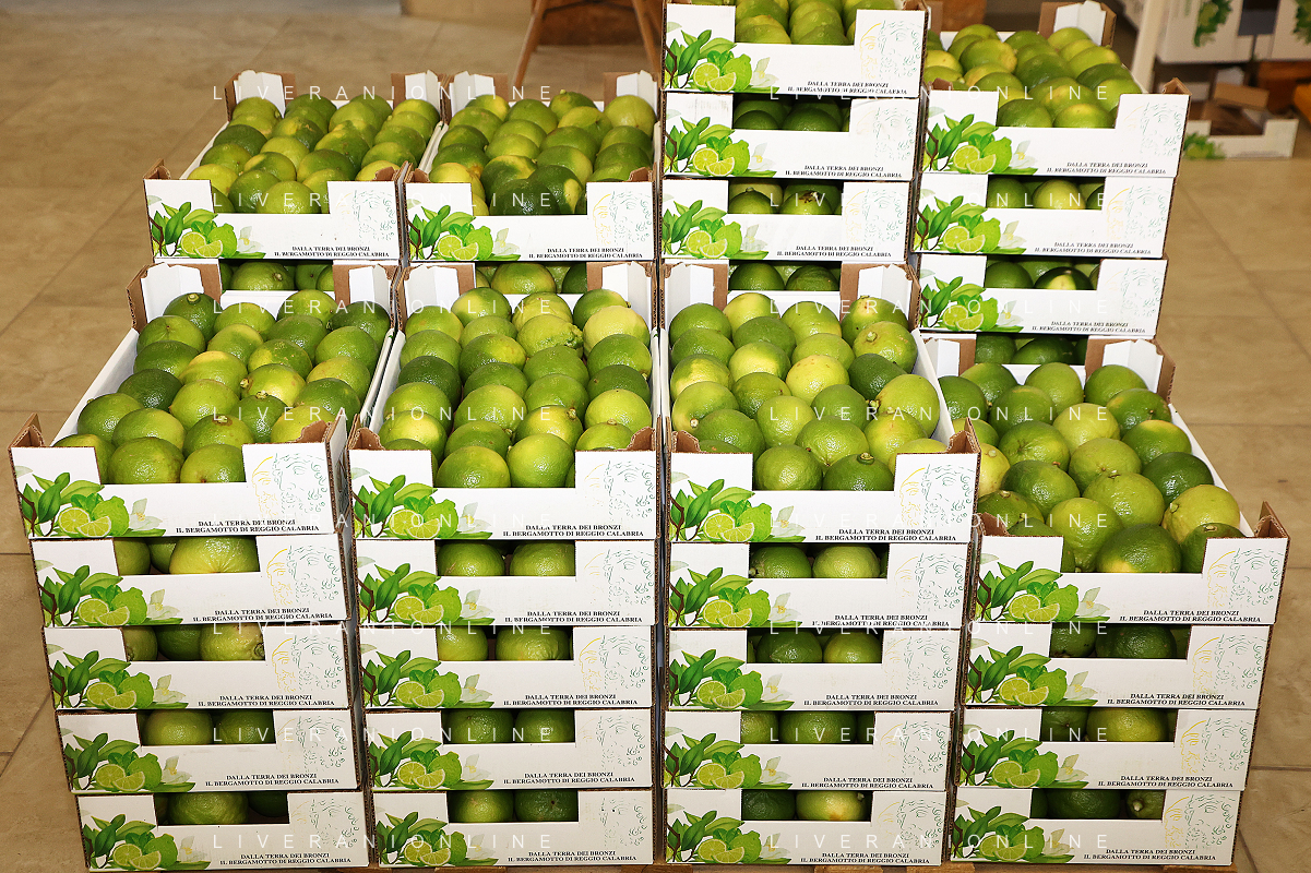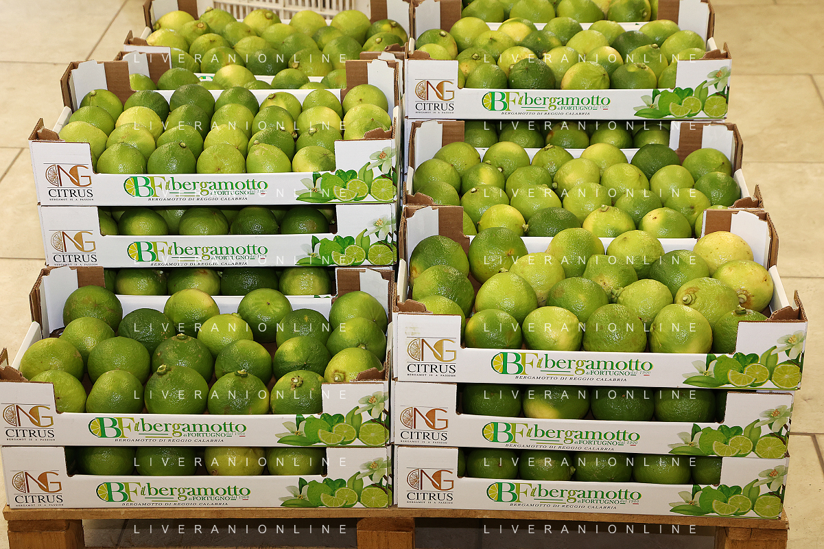 Reggio Calabria 01/11/2023 Località Aretina. Azienda Agricola Bergamotto Fortugno. In foto: Bergamotto selezionato in cassette per la spedizione FOTO PASQUALE GAREFFA-AG ALDO LIVERANI SAS
