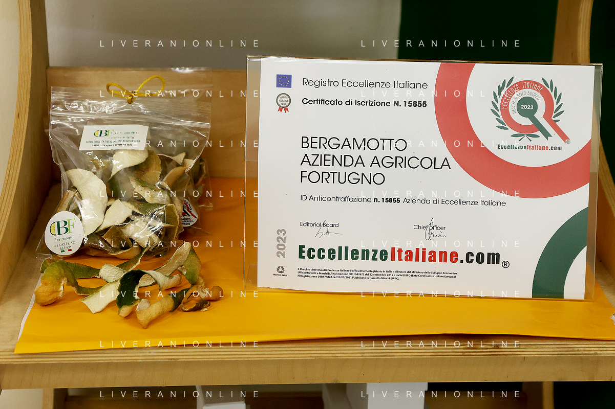 Reggio Calabria 01/11/2023 Località Aretina. Azienda Agricola Bergamotto Fortugno. In foto: Certificazione Eccellenze Italiane FOTO PASQUALE GAREFFA-AG ALDO LIVERANI SAS
