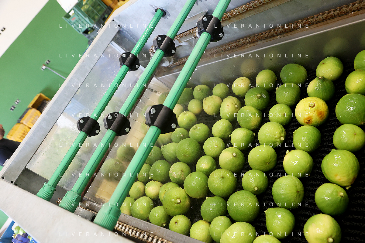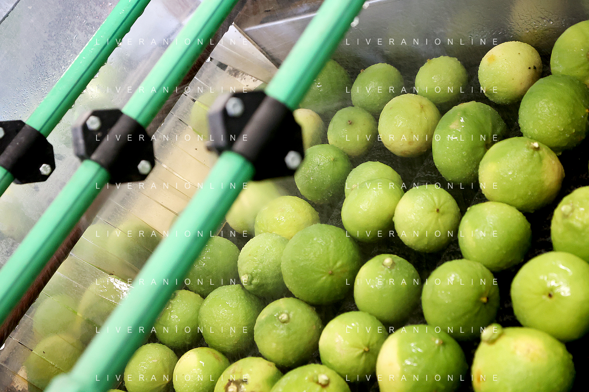 Reggio Calabria 01/11/2023 Località Aretina. Azienda Agricola Bergamotto Fortugno. In foto: il Bergamotto viene lavato a pioggia FOTO PASQUALE GAREFFA-AG ALDO LIVERANI SAS