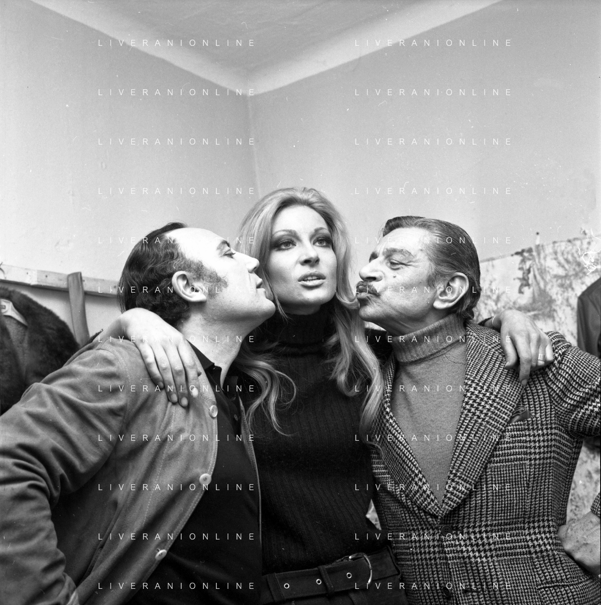 Neg- RETROSPETTIVA HELENE CHANEL ATTRICE CON IL CANTANTE CLAUDIO VILLA E L'ATTORE COMICO TINO SCOTTI NELLA FOTO A MILANO NEL DICEMBRE DEL 1970 AG ALDO LIVERANI SAS