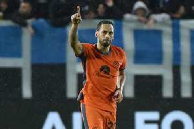 Atalanta vs Inter nella foto Hakan Calhanoglu (Inter) esulta dopo il gol dell'1 a 0 su rigore Bergamo 04-11-2023 Gewiss Stadium - Stadio Atleti Azzurri d'Italia Campionato Serie A TIM - 11a giornata foto Roberto Garavaglia/ag. Aldo Liverani sas/AGENZIA ALDO LIVERANI SAS