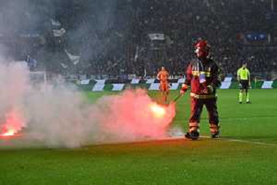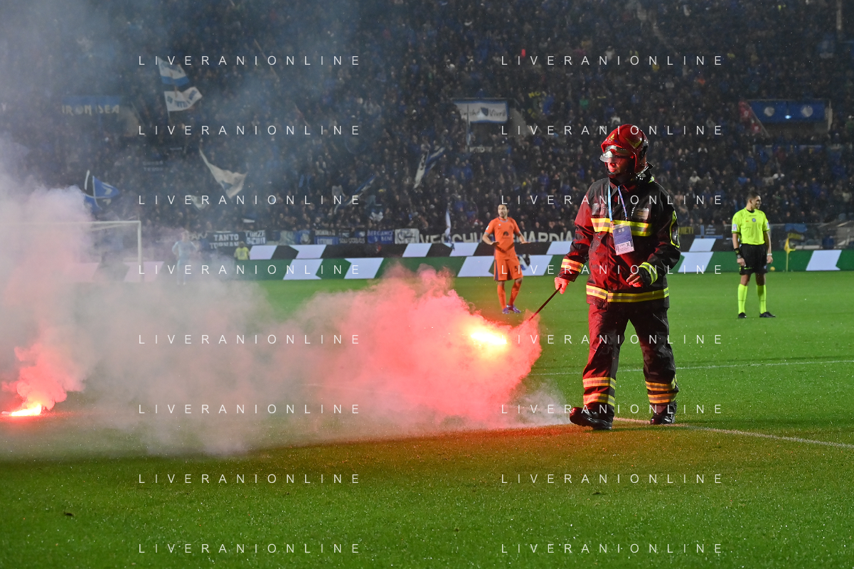 Atalanta vs Inter nella foto tifosi Inter lanciano fumogeni - vigili del fuoco in campo Bergamo 04-11-2023 Gewiss Stadium - Stadio Atleti Azzurri d'Italia Campionato Serie A TIM - 11a giornata foto Roberto Garavaglia/ag. Aldo Liverani sas/AGENZIA ALDO LIVERANI SAS