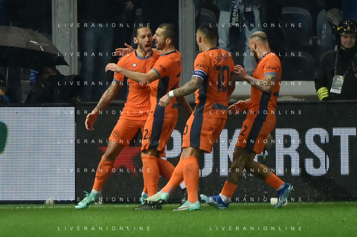 Atalanta vs Inter nella foto esultanza Inter dopo il gol dell'1 a 0 Hakan Calhanoglu su rigore Bergamo 04-11-2023 Gewiss Stadium - Stadio Atleti Azzurri d'Italia Campionato Serie A TIM - 11a giornata foto Roberto Garavaglia/ag. Aldo Liverani sas/AGENZIA ALDO LIVERANI SAS