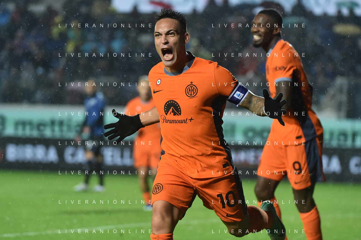 Atalanta vs Inter nella foto Lautaro Martinez (Inter) esulta dopo il gol del 2 a 0 Bergamo 04-11-2023 Gewiss Stadium - Stadio Atleti Azzurri d'Italia Campionato Serie A TIM - 11a giornata foto Roberto Garavaglia/ag. Aldo Liverani sas/AGENZIA ALDO LIVERANI SAS
