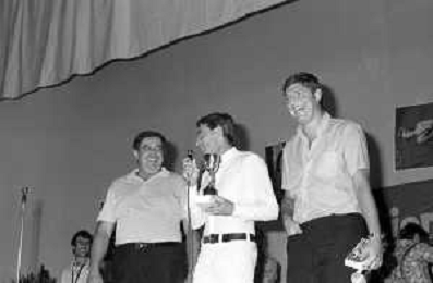 Neg- RETROSPETTIVA 1° PREMIO FERRAGOSTO D'ORO RICCIONE 18 AGOSTO 1969 NELLA FOTO RENZO ARBORE CON GIANNI BELLENO E GIORGIO D'ADAMO DEL GRUPPO MUSICALE NEW TROLLS AG ALDO LIVERANI SAS