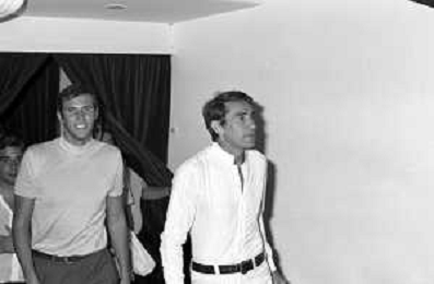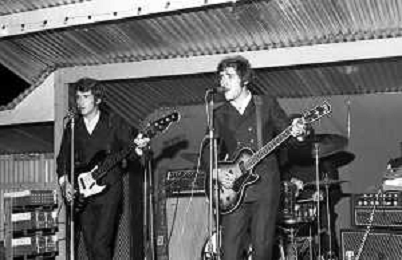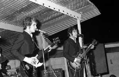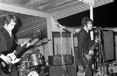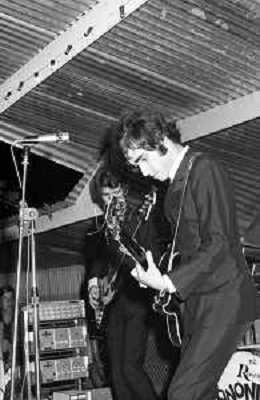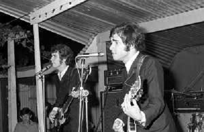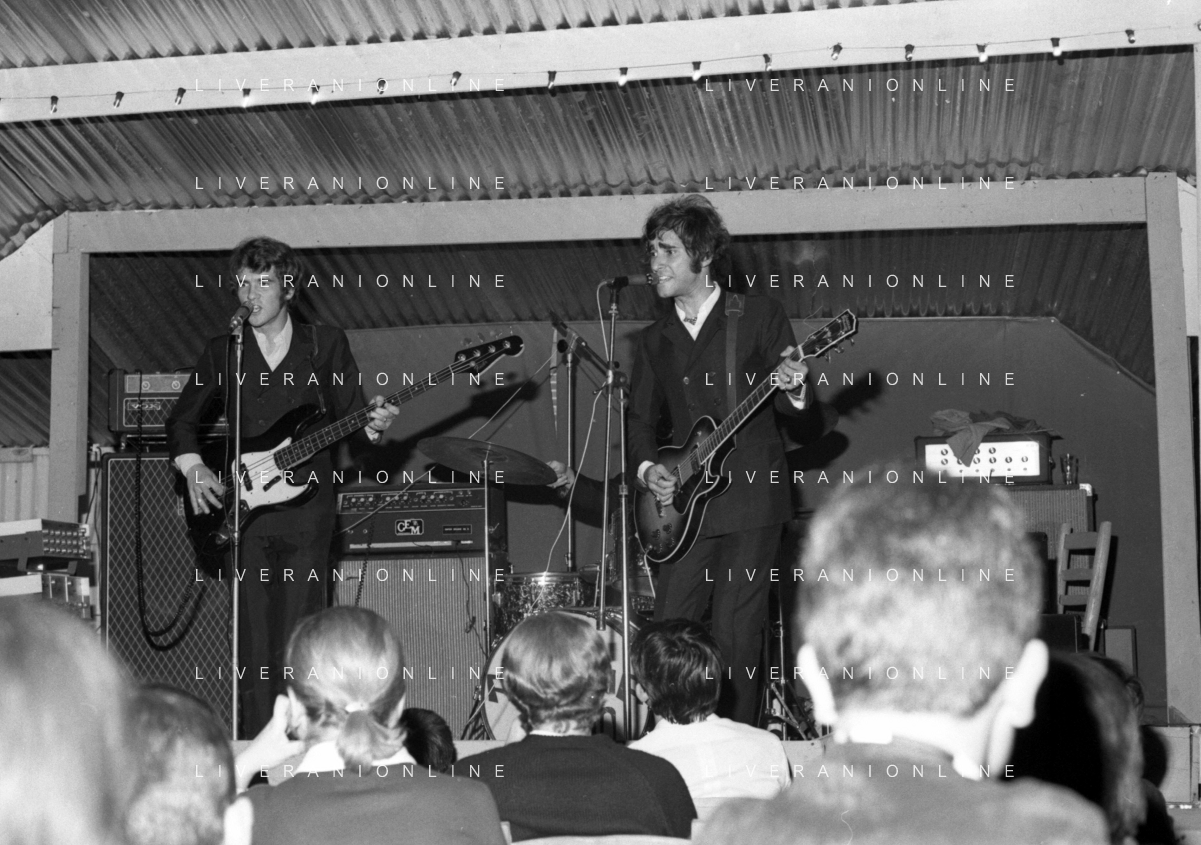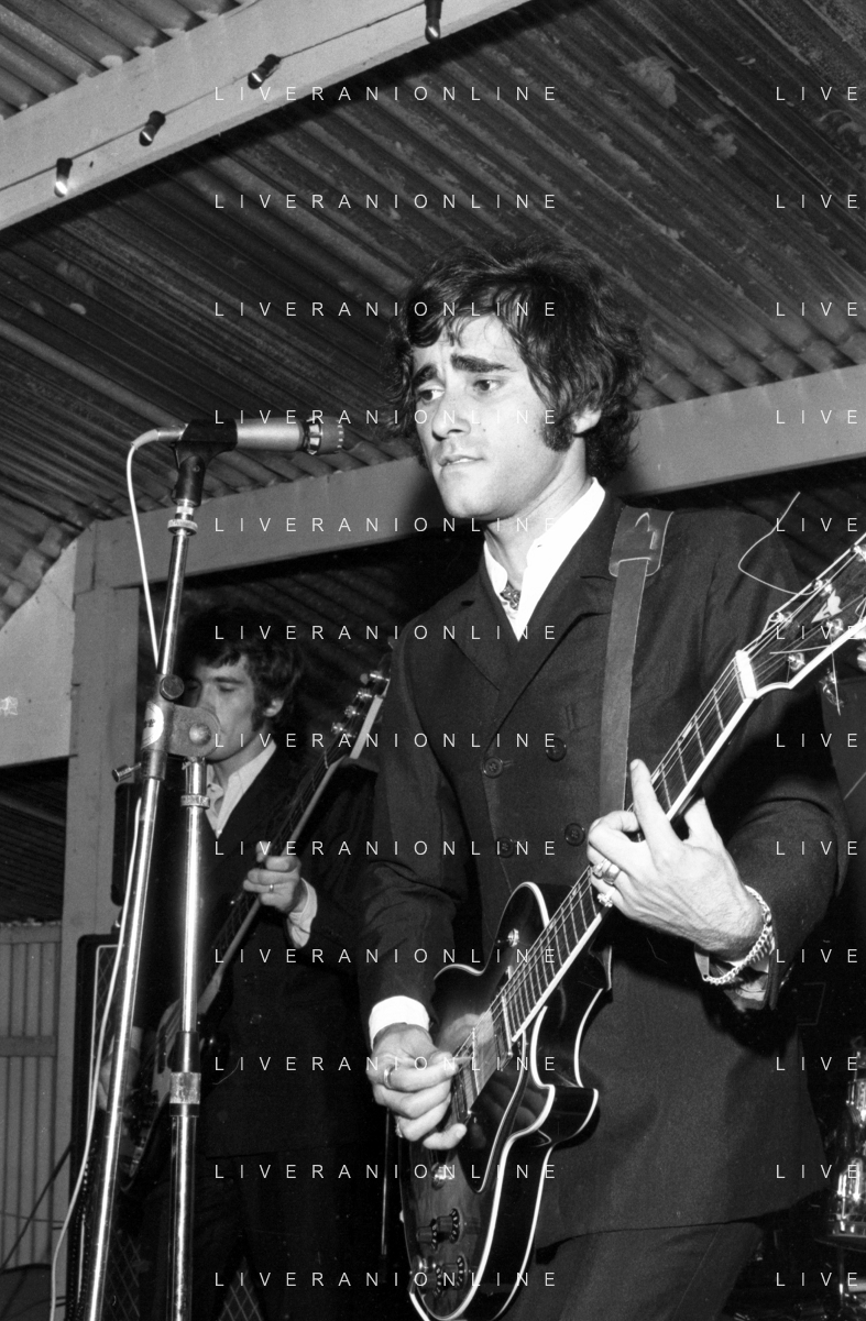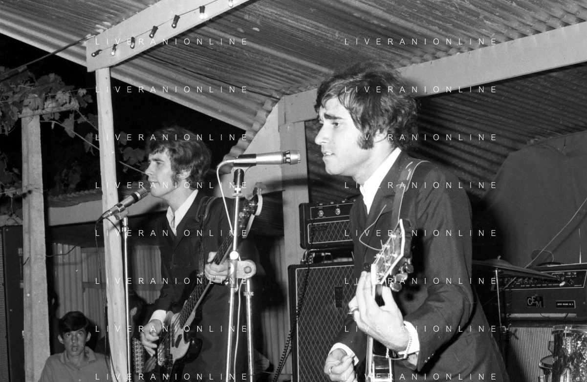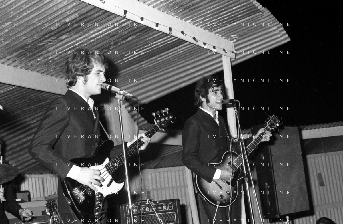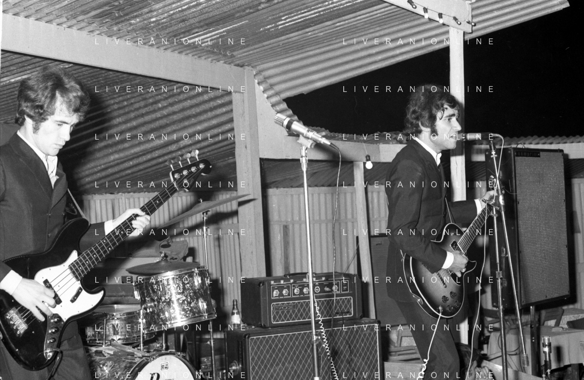 Neg- RETROSPETTIVA 1° PREMIO FERRAGOSTO D'ORO RICCIONE 18 AGOSTO 1969 NELLA FOTO IL GRUPPO MUSICALE 'ANONIMA SOUND' COMPOSTO DA IVAN GRAZIANI (chitarra-voce), WALTER MONACCHI (basso) AG ALDO LIVERANI SAS