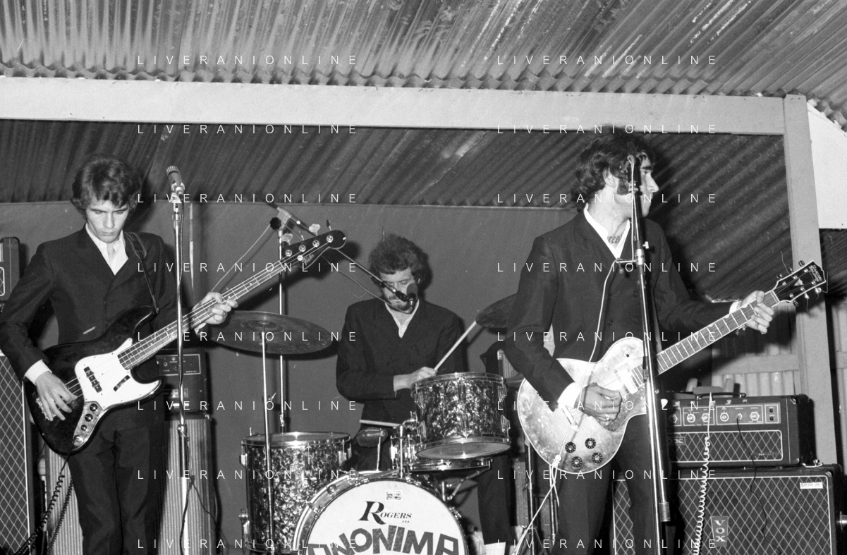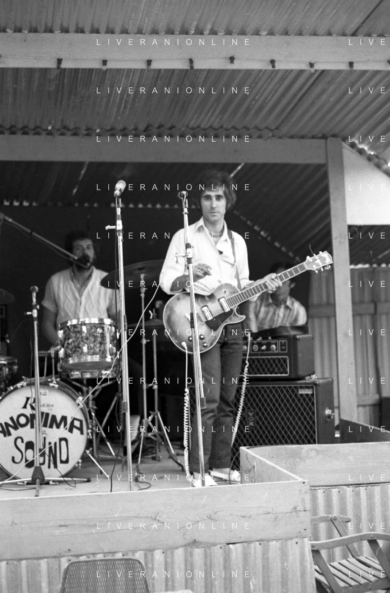 Neg- RETROSPETTIVA 1° PREMIO FERRAGOSTO D'ORO RICCIONE 18 AGOSTO 1969 NELLA FOTO IL GRUPPO MUSICALE 'ANONIMA SOUND' COMPOSTO DA IVAN GRAZIANI (chitarra-voce), WALTER MONACCHI (basso) e VELIO GUALAZZI (batteria) AG ALDO LIVERANI SAS