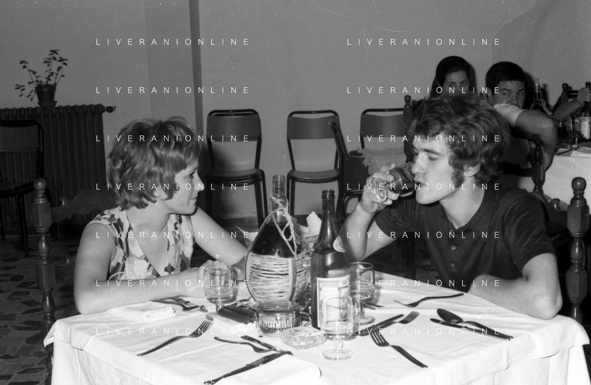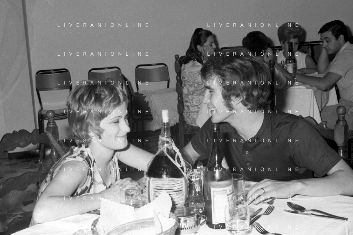Neg- RETROSPETTIVA 1° PREMIO FERRAGOSTO D'ORO RICCIONE 18 AGOSTO 1969 NELLA FOTO IVAN GRAZIANI (chitarra-voce) DEL GRUPPO MUSICALE 'ANONIMA SOUND' CON LA MOGLIE ANNA BISCHI AG ALDO LIVERANI SAS