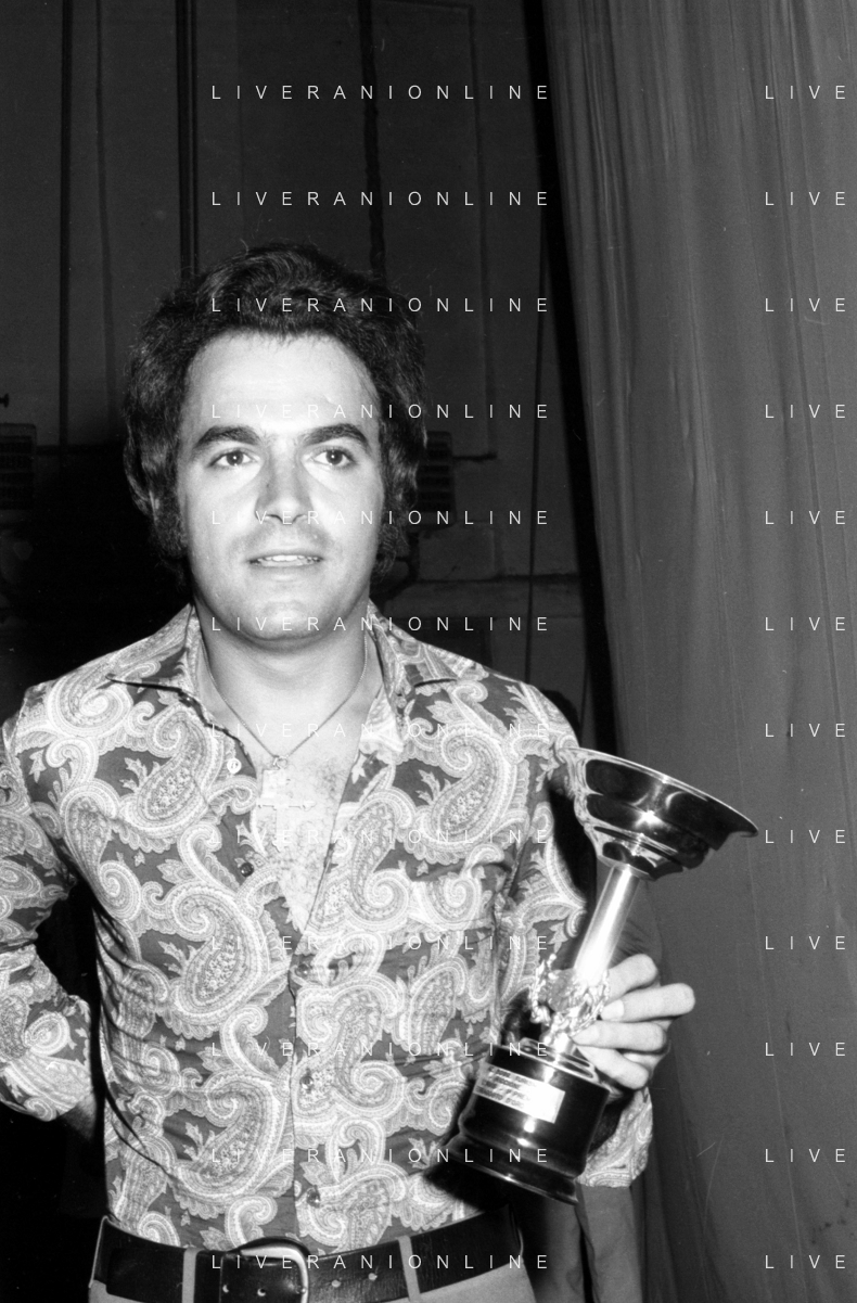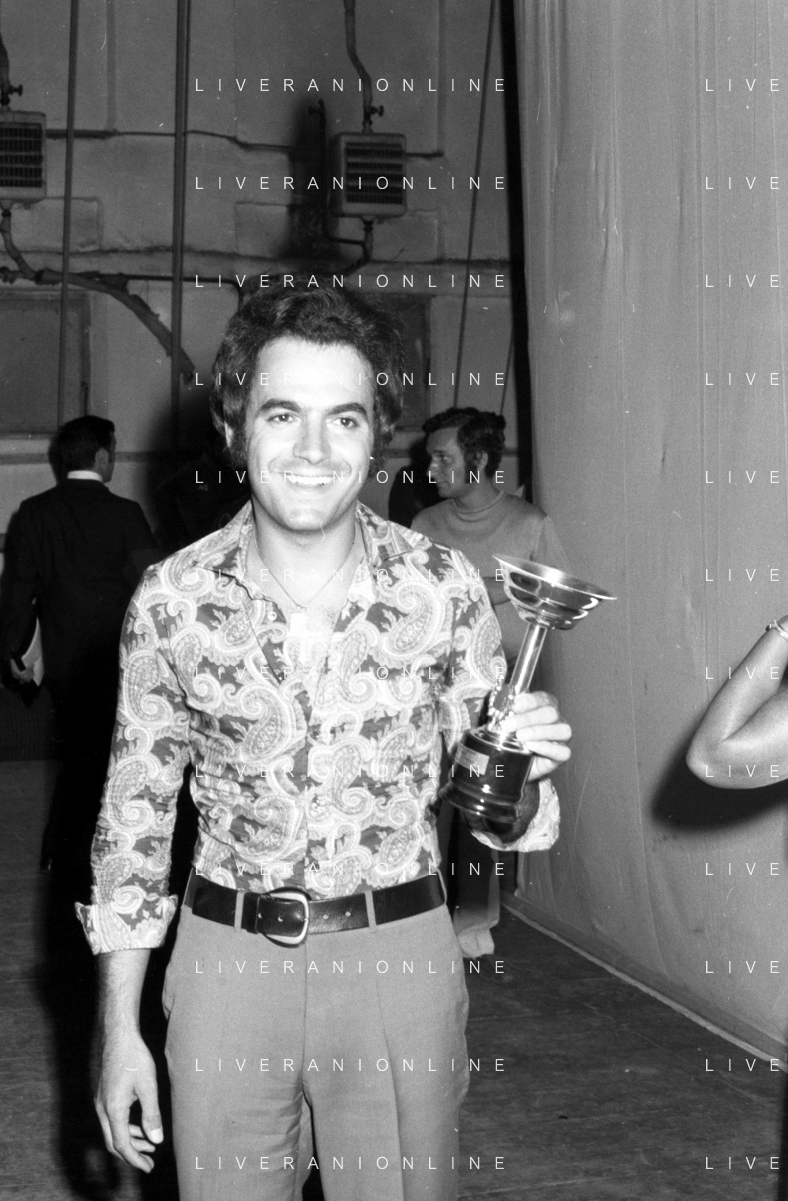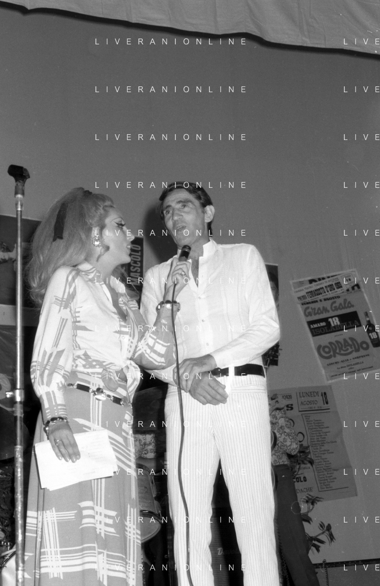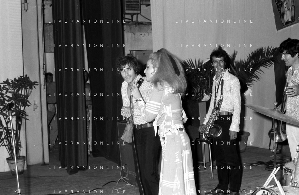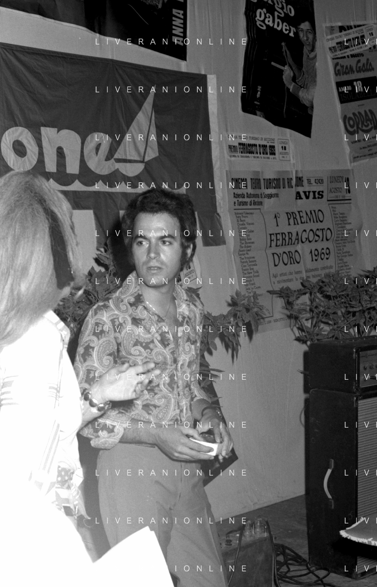 Neg- RETROSPETTIVA 1° PREMIO FERRAGOSTO D'ORO RICCIONE 18 AGOSTO 1969 NELLA FOTO IVAN GRAZIANI (chitarra-voce) DEL GRUPPO MUSICALE 'ANONIMA SOUND' CON LA PRESENTATRICE ANNA MASCOLO AG ALDO LIVERANI SAS