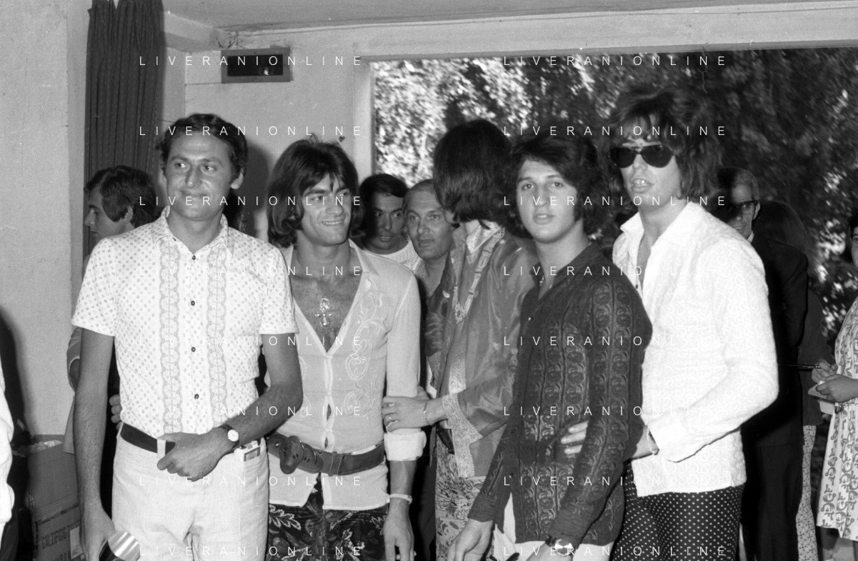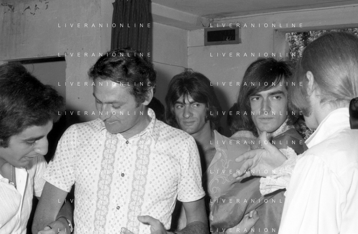 Neg- RETROSPETTIVA 1° PREMIO FERRAGOSTO D'ORO RICCIONE 18 AGOSTO 1969 NELLA FOTO RENZO ARBORE CON GIANNI BELLENO, VITTORIO DE SCALZI E NICO DE PALO DEL GRUPPO MUSICALE NEW TROLLS AG ALDO LIVERANI SAS