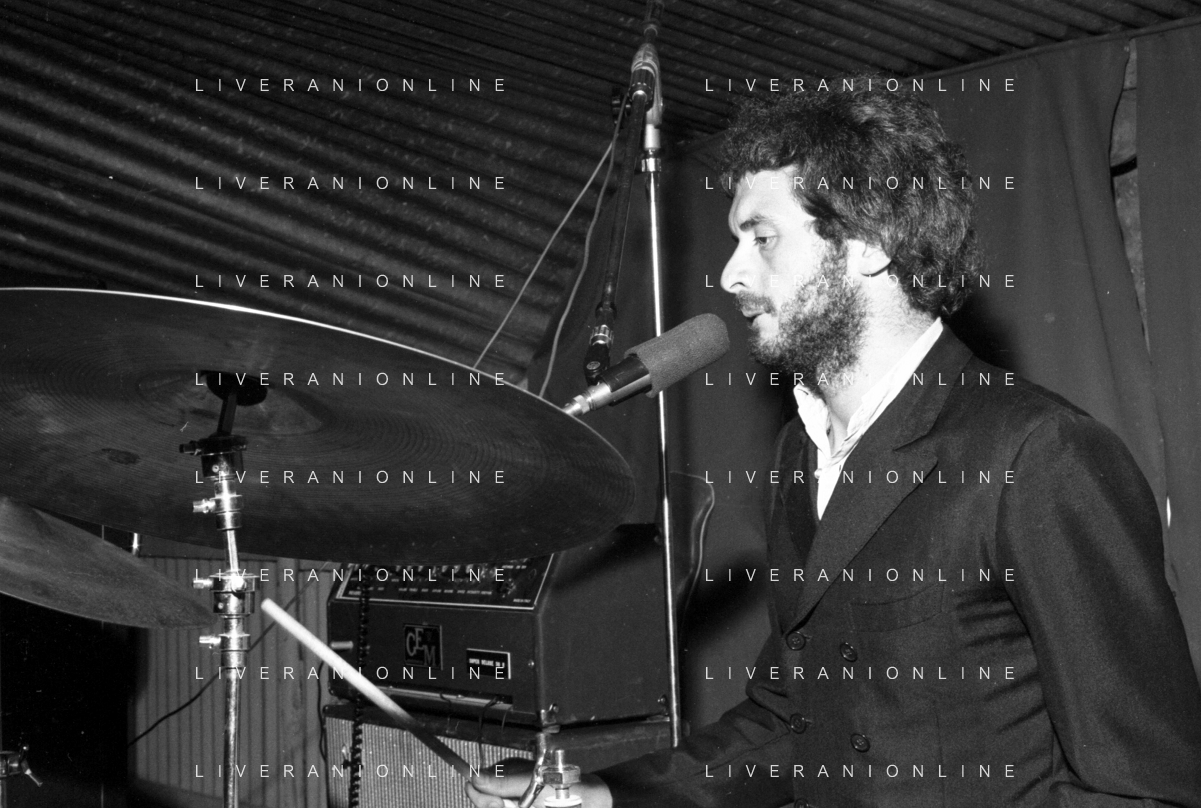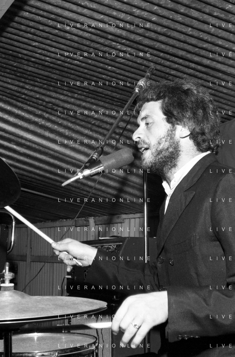 Neg- RETROSPETTIVA 1° PREMIO FERRAGOSTO D'ORO RICCIONE 18 AGOSTO 1969 NELLA FOTO VELIO GUALAZZI (batteria) DEL GRUPPO MUSICALE 'ANONIMA SOUND' CON GIANNI BELLENO DEI NEW TROLLS AG ALDO LIVERANI SAS