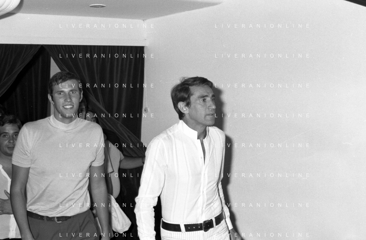 Neg- RETROSPETTIVA 1° PREMIO FERRAGOSTO D'ORO RICCIONE 18 AGOSTO 1969 NELLA FOTO LA PREMIAZIONE DI WALTER CHIARI CON LA PRESENTATRICE ANNA MASCOLO E JACK LA CAYENNE AG ALDO LIVERANI SAS