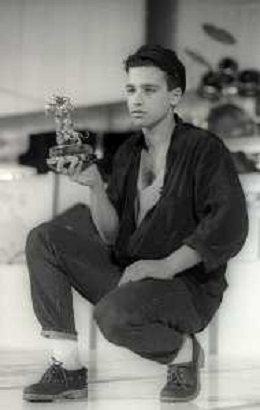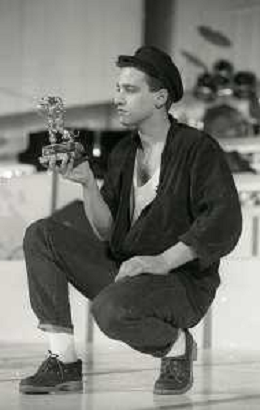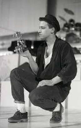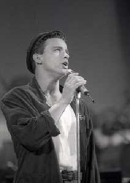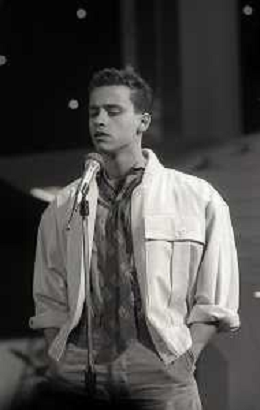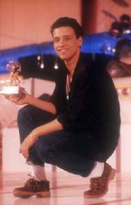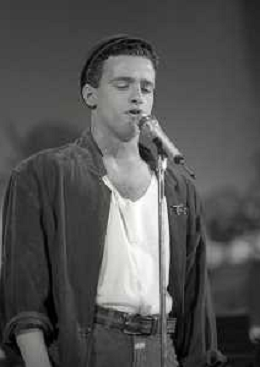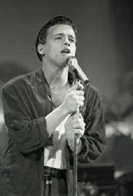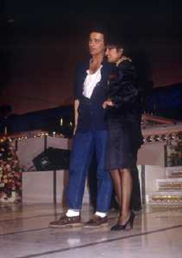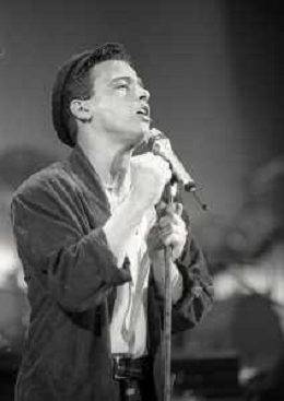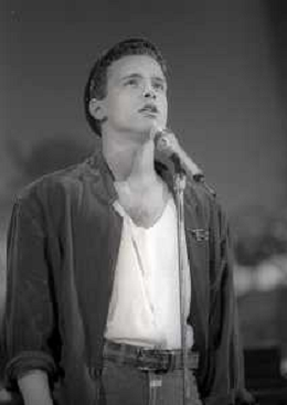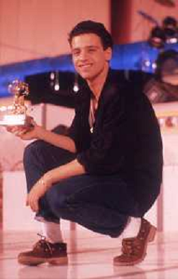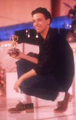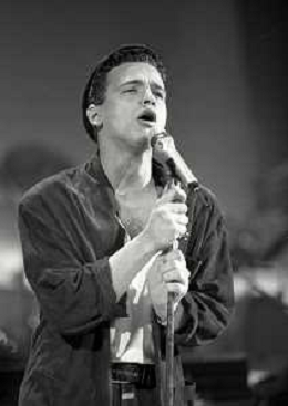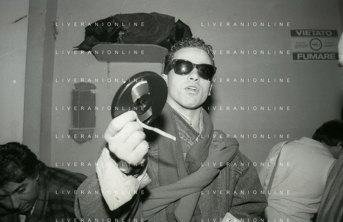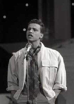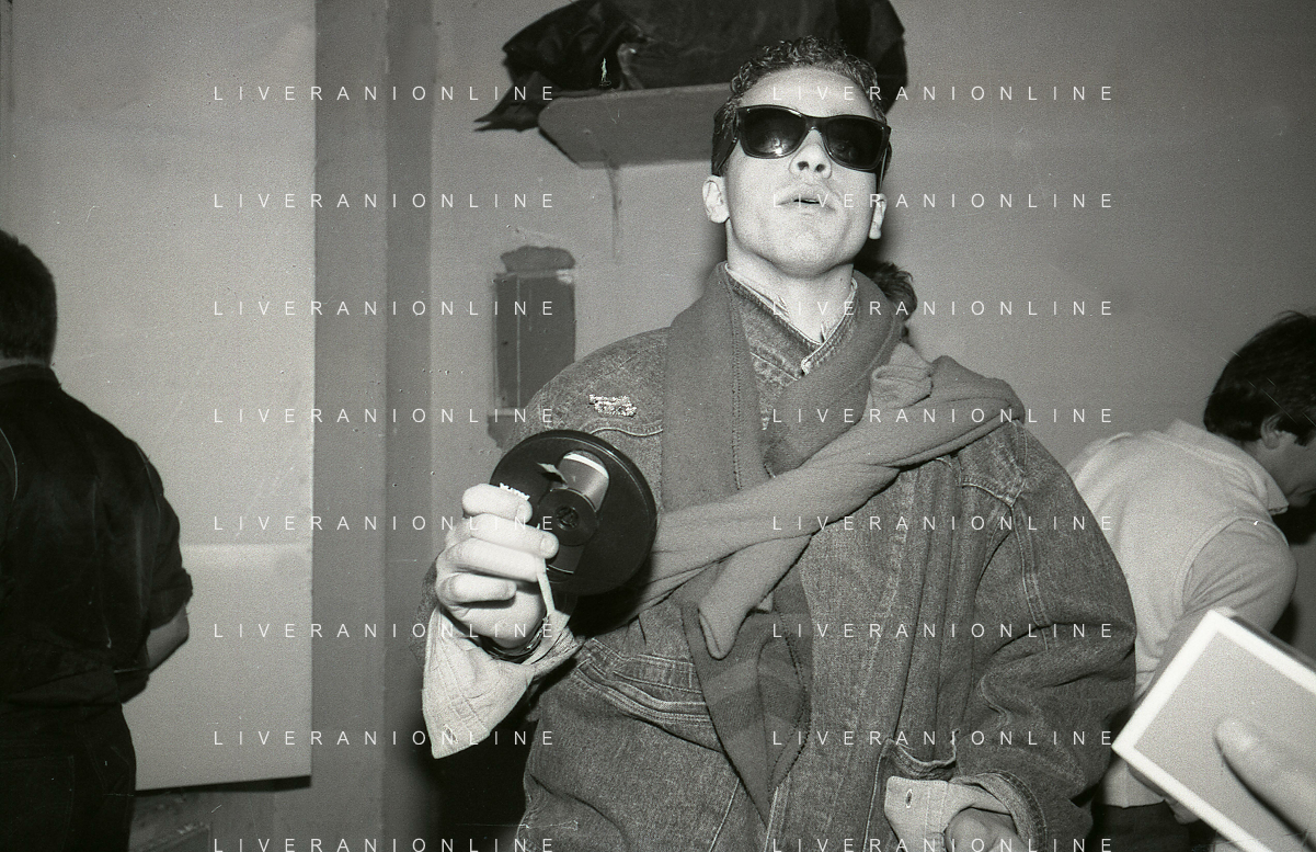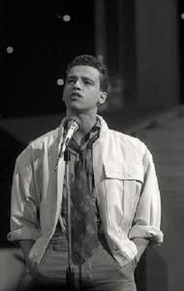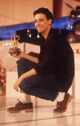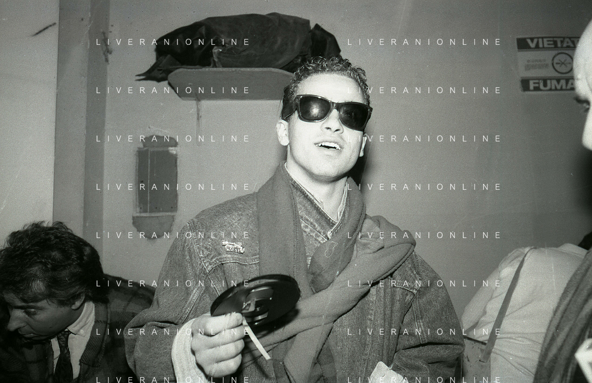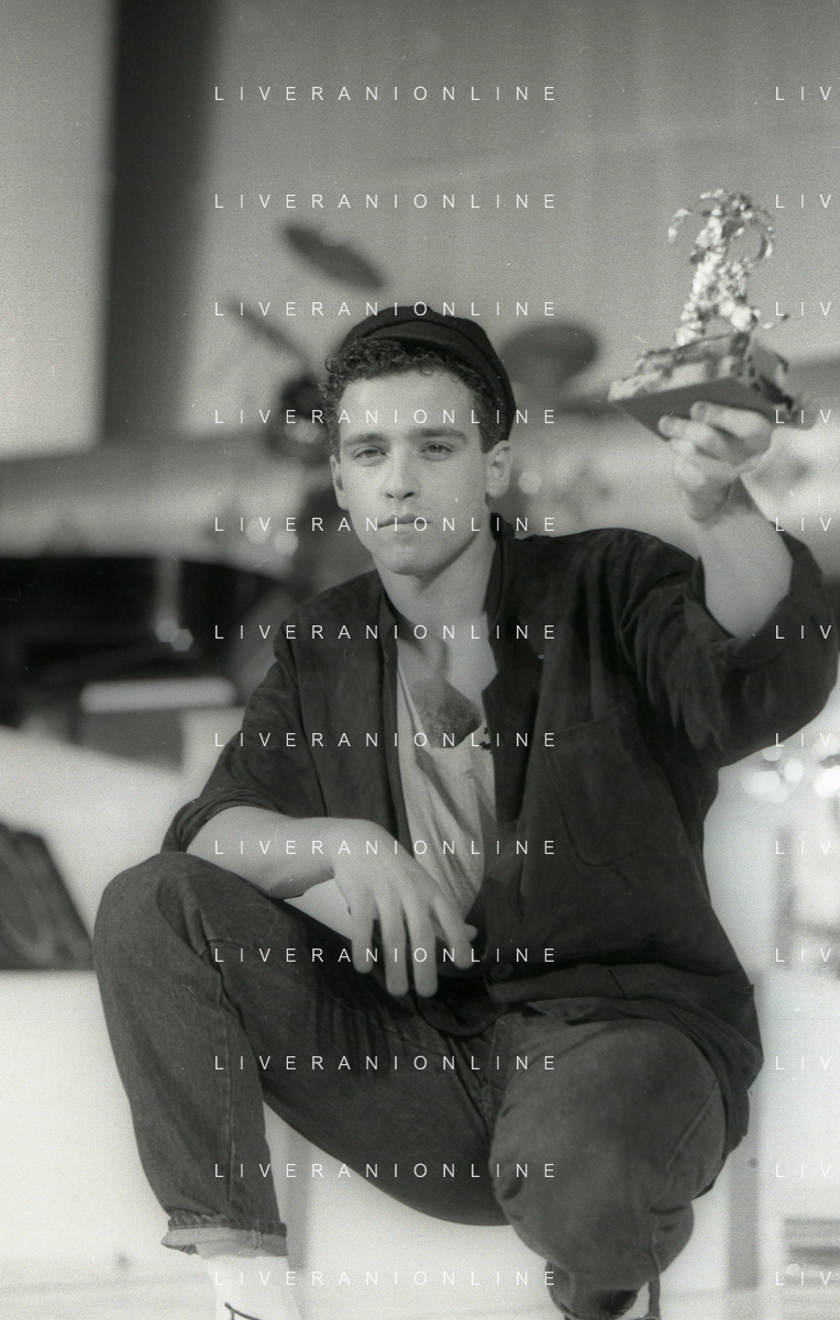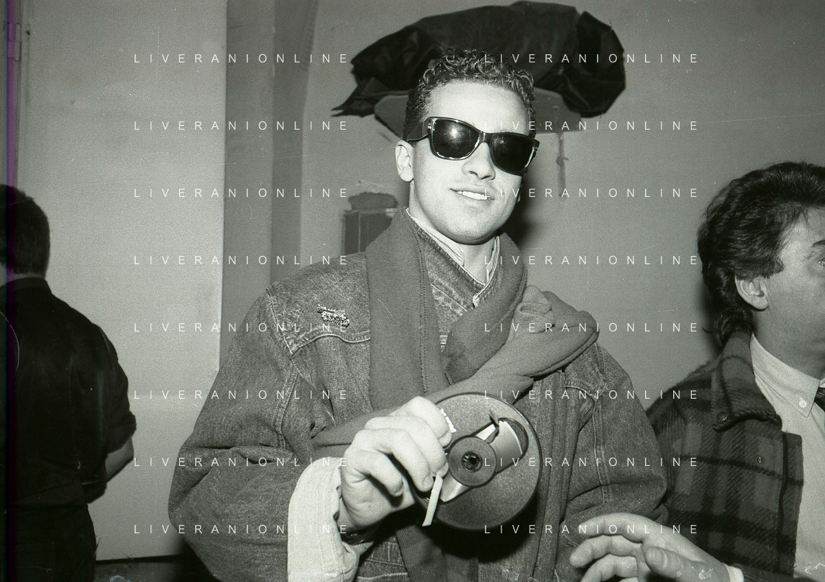 NEG-RETROSPETTIVA EROS RAMAZZOTTI CANTANTE NELLA FOTO EROS RAMAZZOTTI NELL'ANNO 1986 AL FESTIVAL DI SANREMO CON RENZO ARBORE E MARCELLA BELLA AG ALDO LIVERANI SAS
