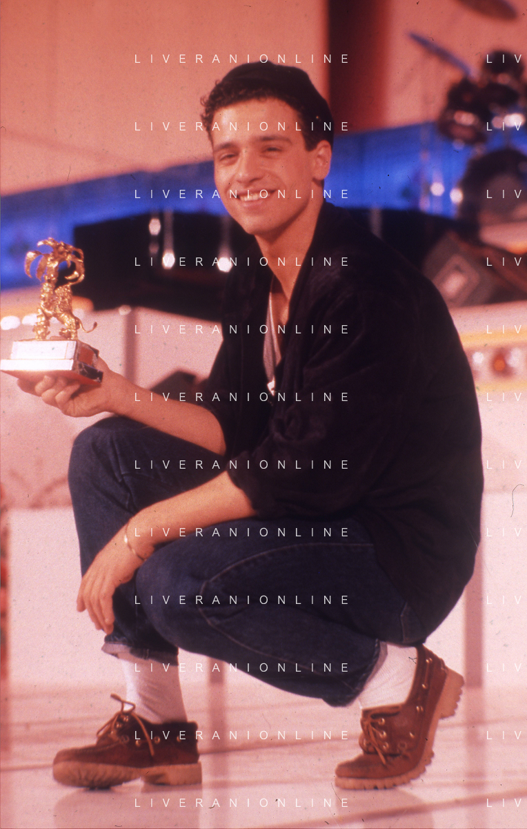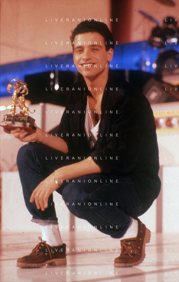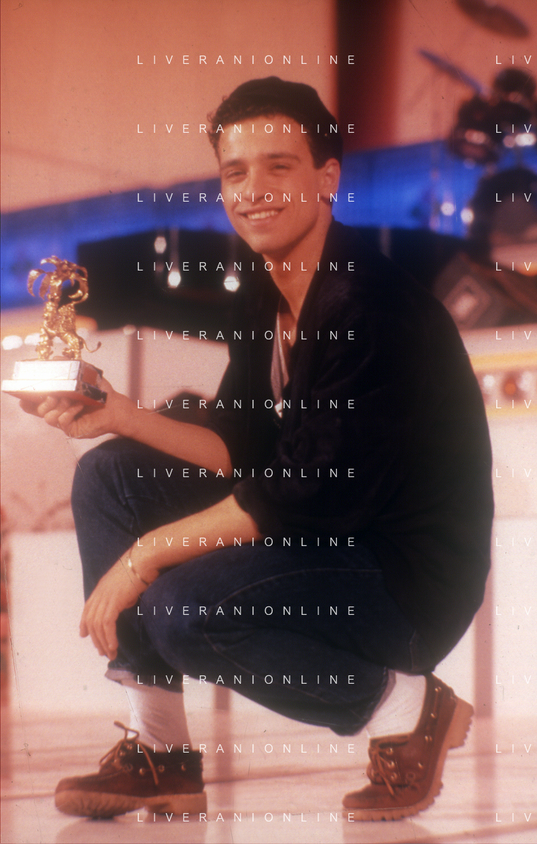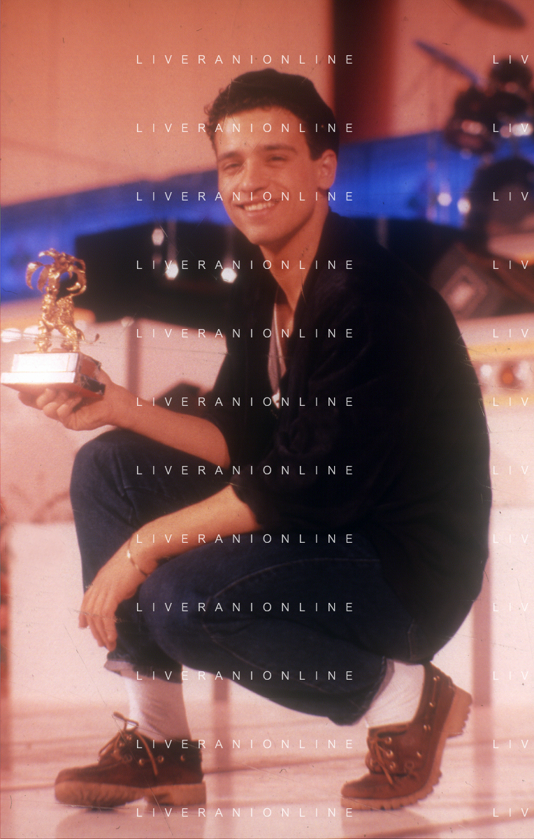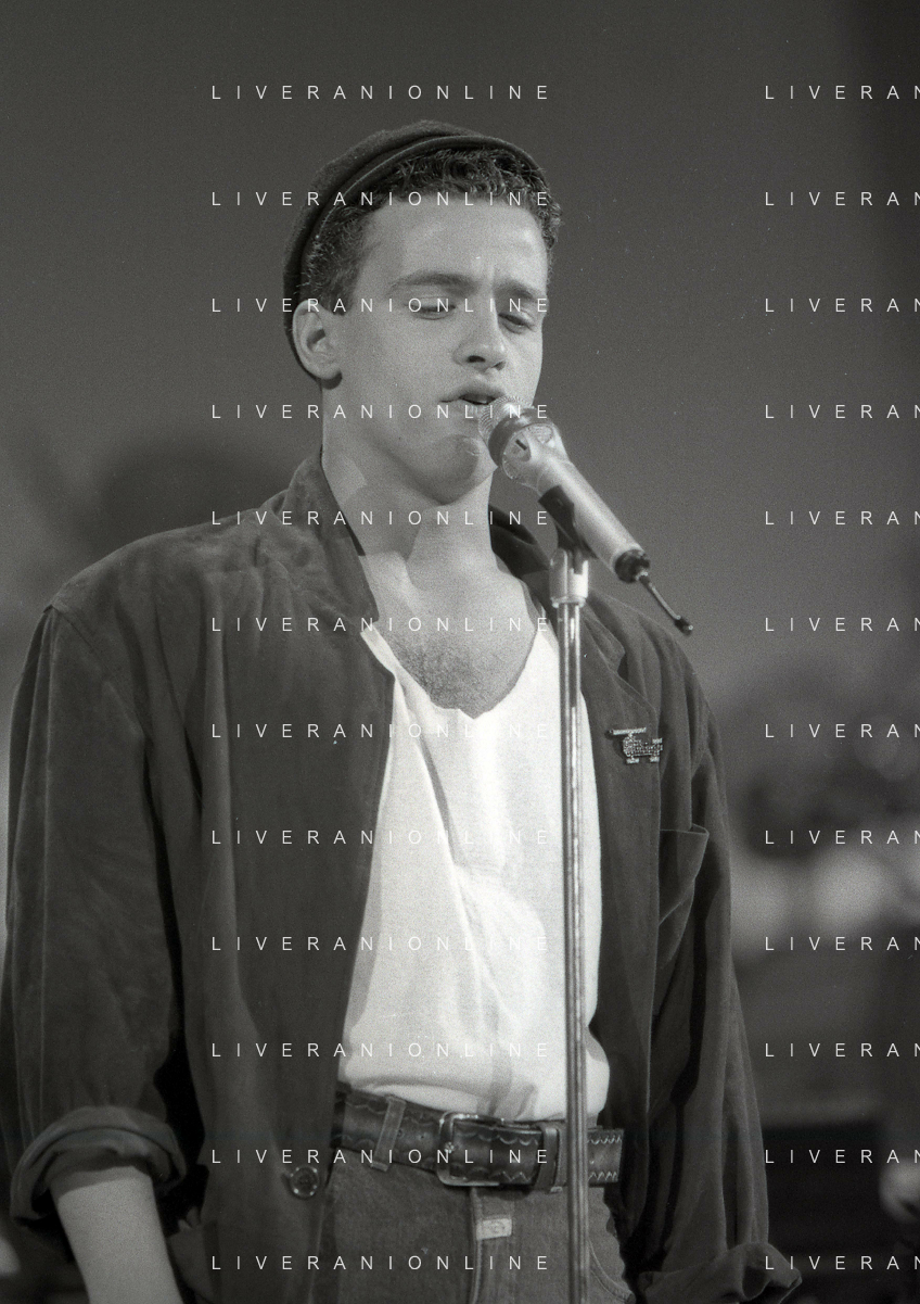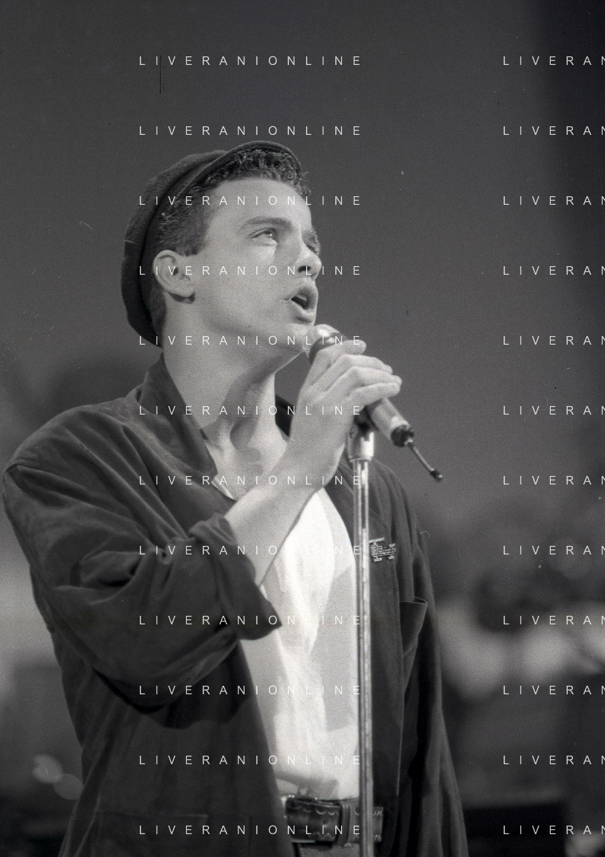 NEG-RETROSPETTIVA EROS RAMAZZOTTI CANTANTE NELLA FOTO EROS RAMAZZOTTI CON RENZO ARBORE E MARCELLA BELLA NELL'ANNO 1986 AL FESTIVAL DI SANREMO AG ALDO LIVERANI SAS