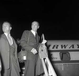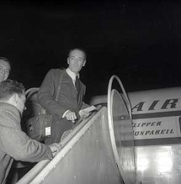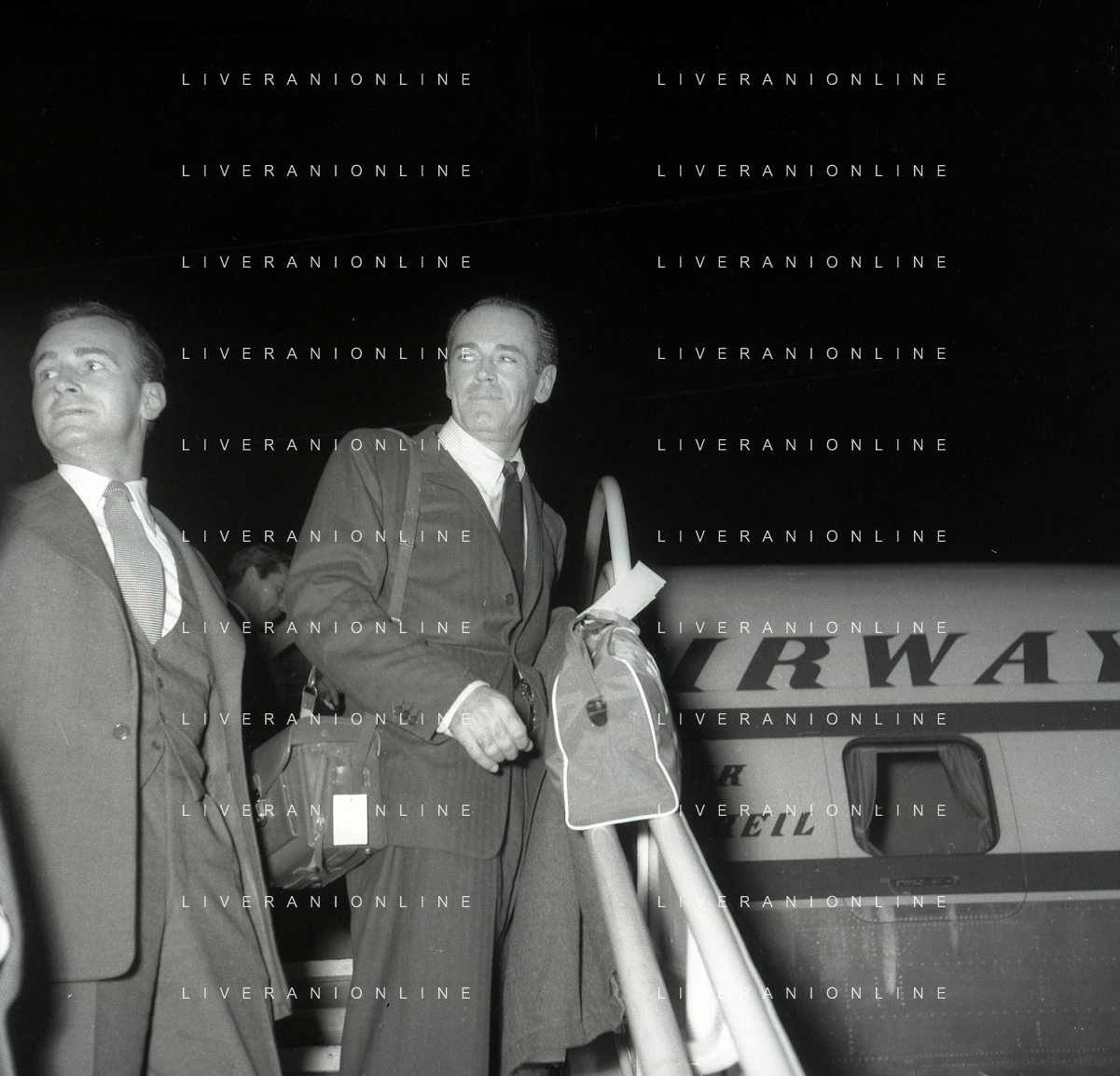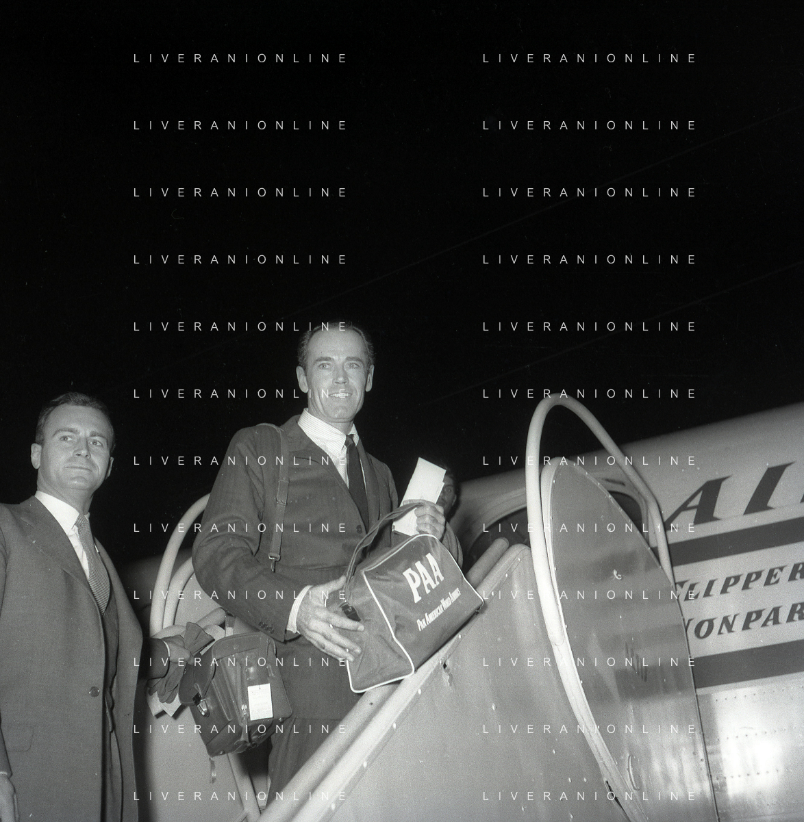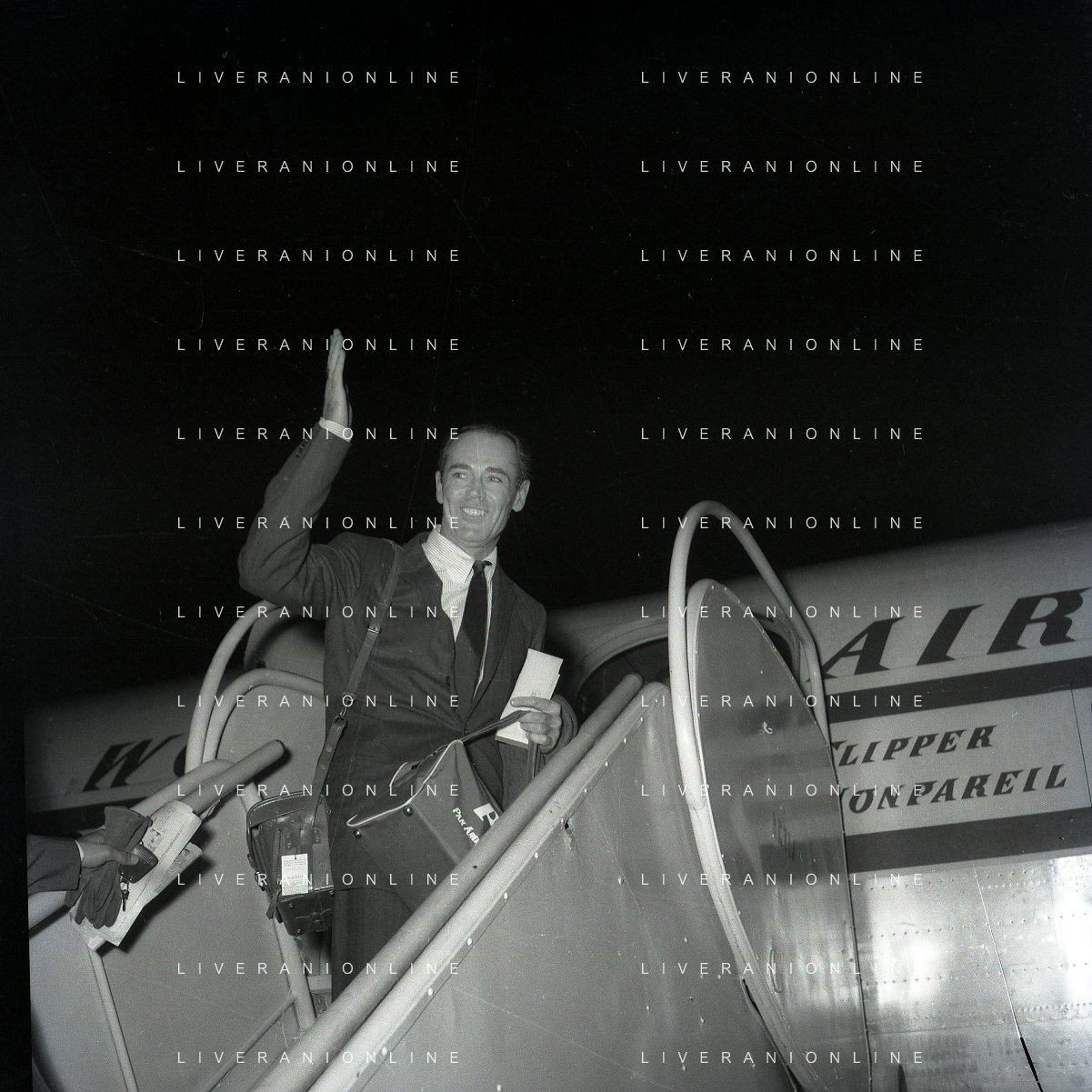 NEG-RETROSPETTIVA HENRY JAYNES FONDA ATTORE NELLA FOTO HENRY JAYNES FONDA ALL'AEROPORTO CIAMPINO DI ROMA NELL'ANNO 1950 FOTO SANDRO VESPASIANI-AG ALDO LIVERANI SAS