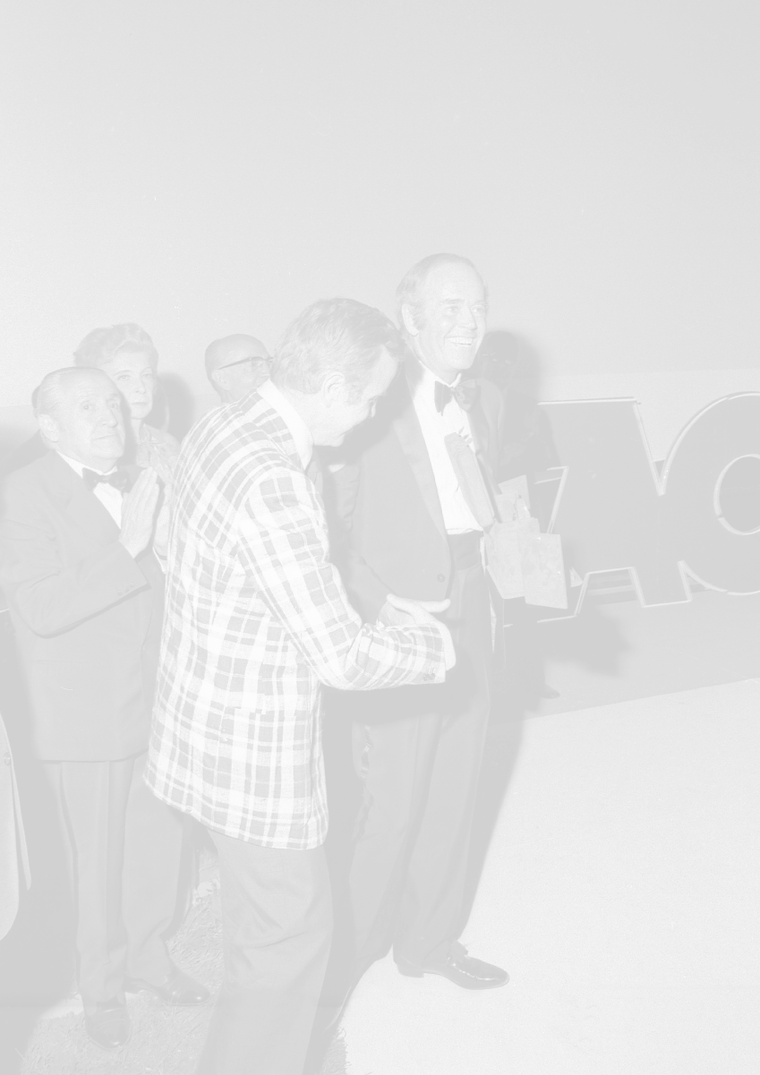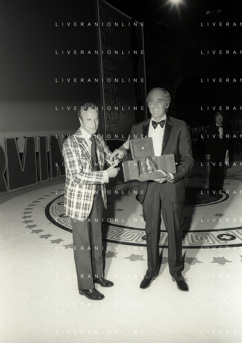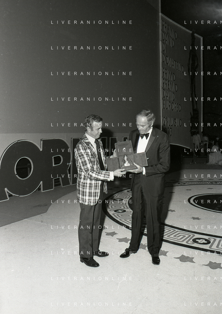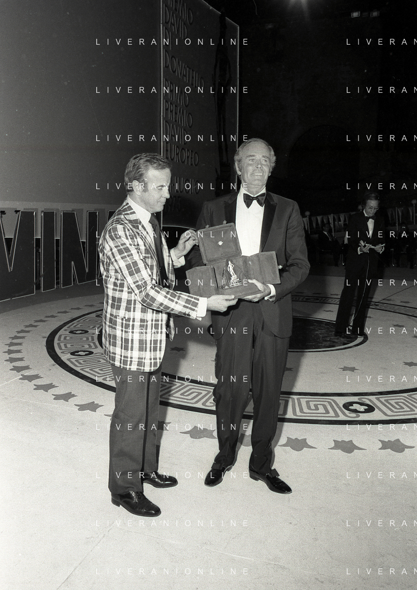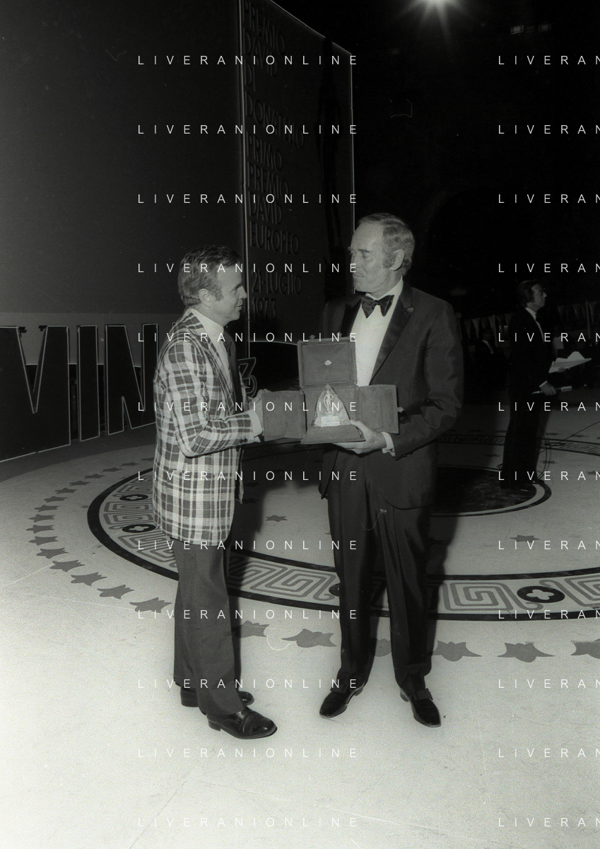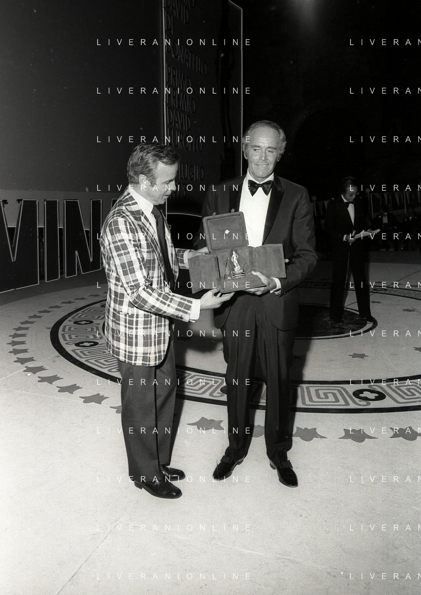 NEG-RETROSPETTIVA HENRY JAYNES FONDA ATTORE NELLA FOTO HENRY JAYNES FONDA CON FRANCO ZEFFIRELLI A TAORMINA AL PREMIO “DONATELLO“ NELL'ANNO 1973 AG ALDO LIVERANI SAS