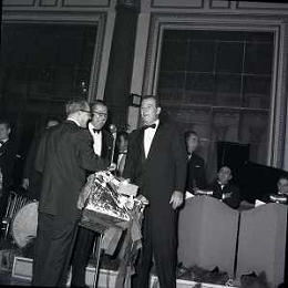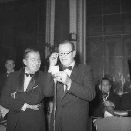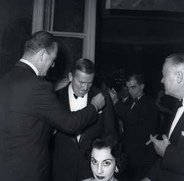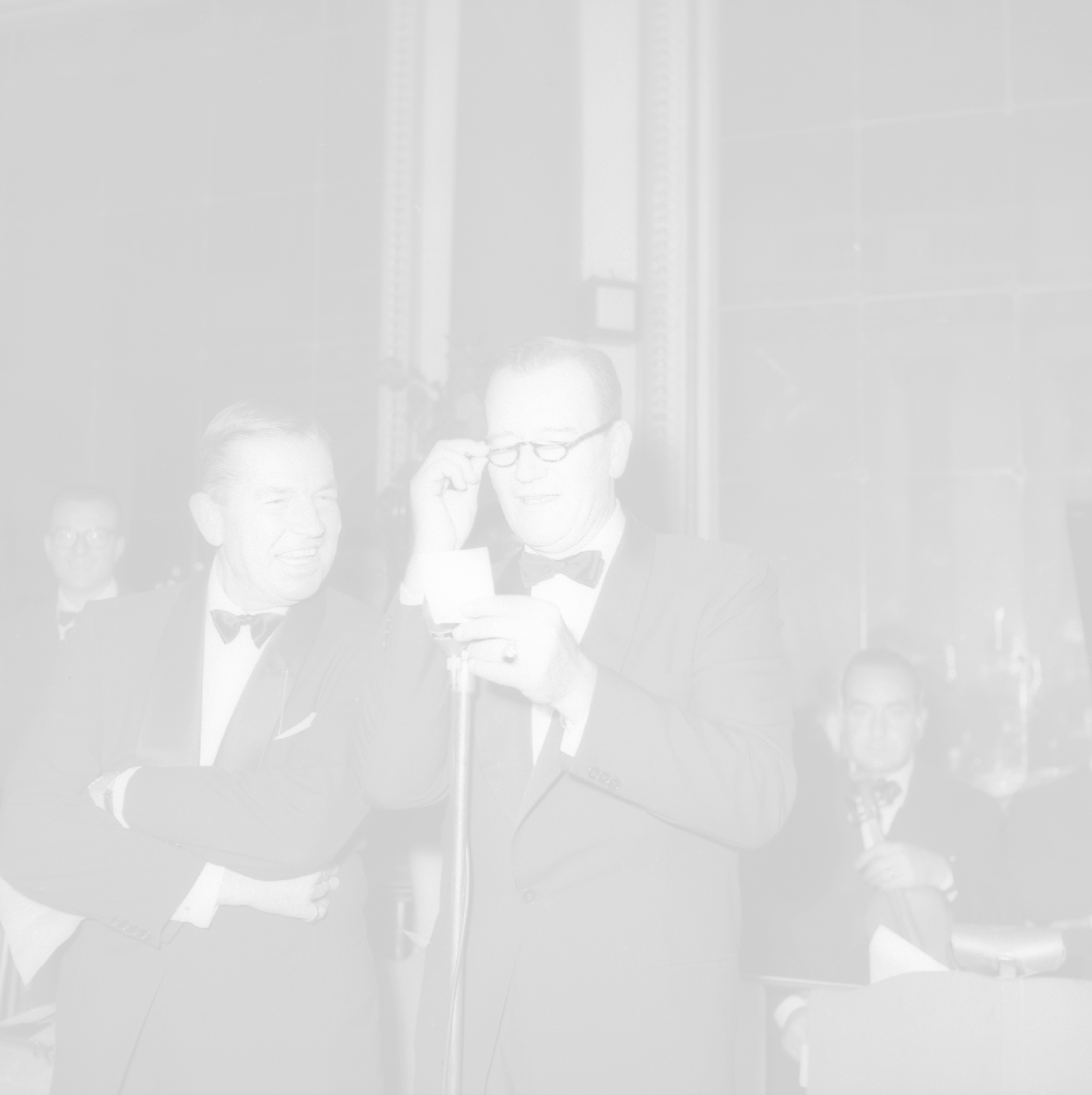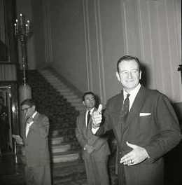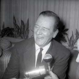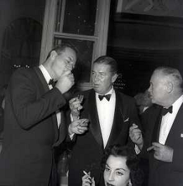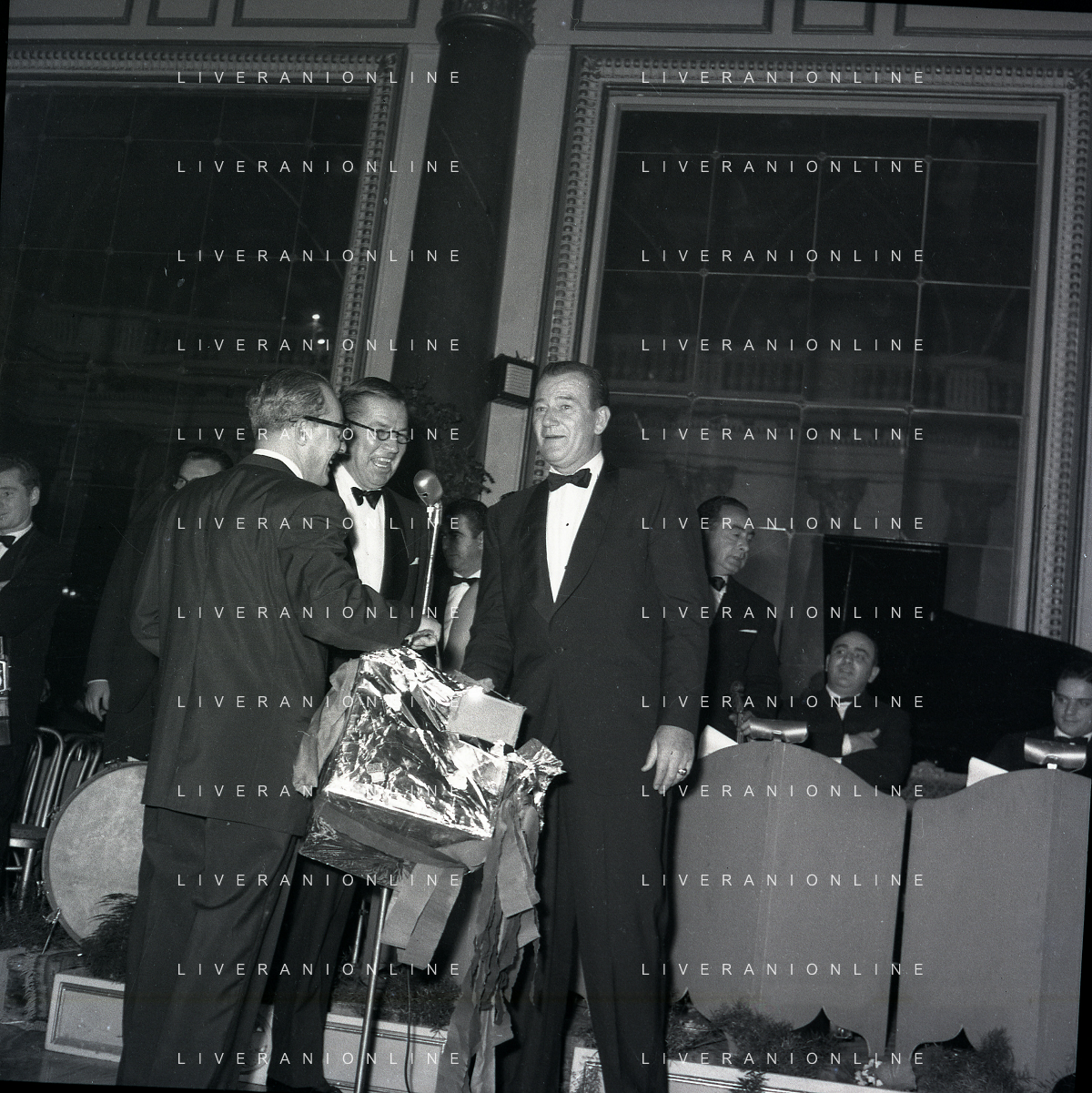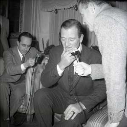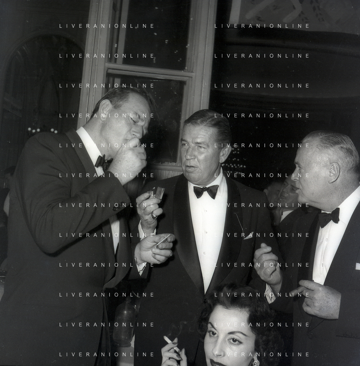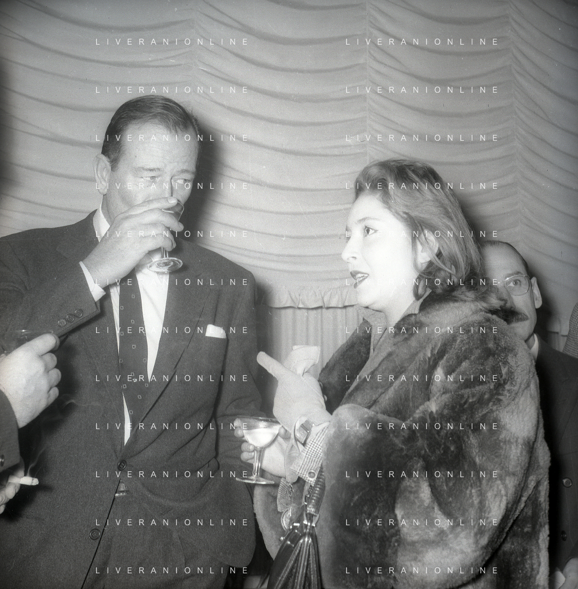 NEG-RETROSPETTIVA JOHN WAYNE ATTORE NELLA FOTO JOHN WAYNE A ROMA IL GIORNO 30-01-1956 A UNA CONFERENZA STAMPA FOTO SANDRO VESPASIANI-AG ALDO LIVERANI SAS