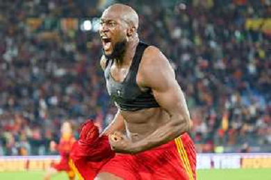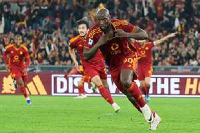 Romelu Lukaku of AS Roma celebrates after scoring a goal during the Italian soccer Serie A match AS Roma vs US Lecce on November 5, 2023 at Olympic Stadium in Rome, Italy. Photo by Emmanuele Mastrodonato/ag. Aldo Liverani sas