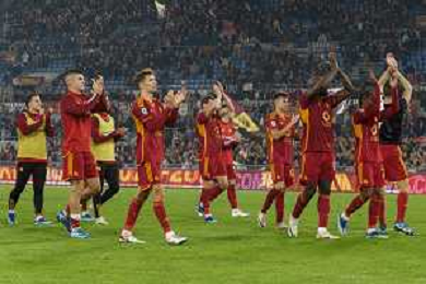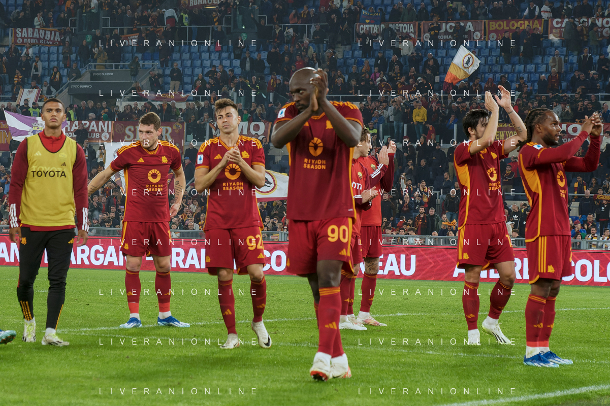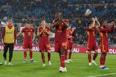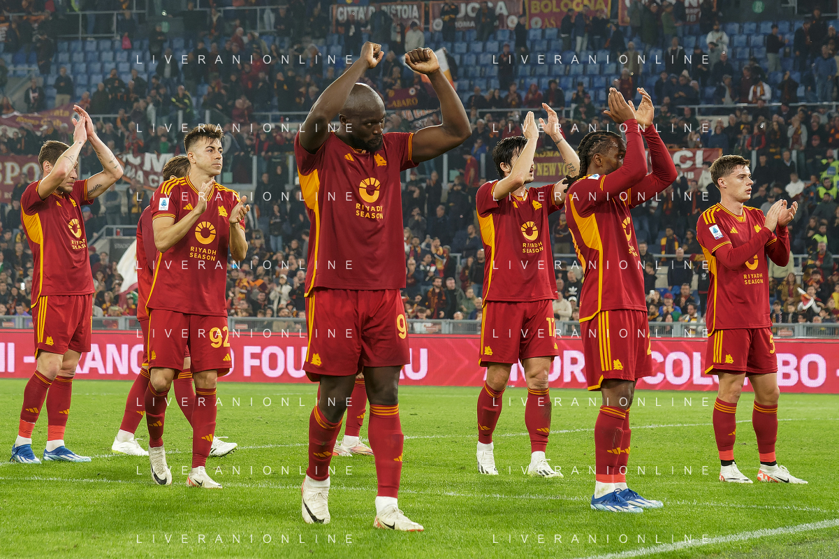 Players of AS Roma applauds fans during the Italian soccer Serie A match AS Roma vs US Lecce on November 5, 2023 at Olympic Stadium in Rome, Italy. Photo by Emmanuele Mastrodonato/ag. Aldo Liverani sas