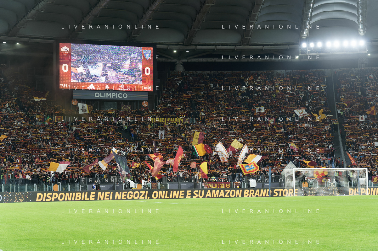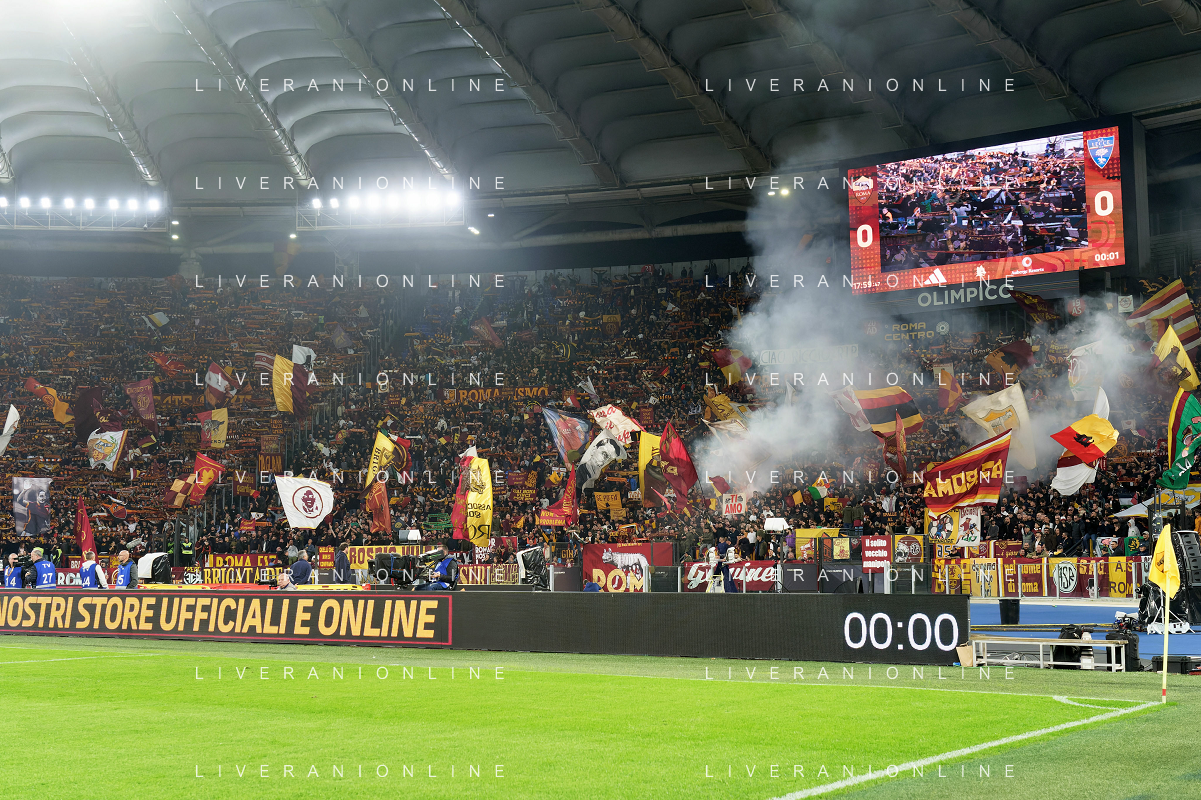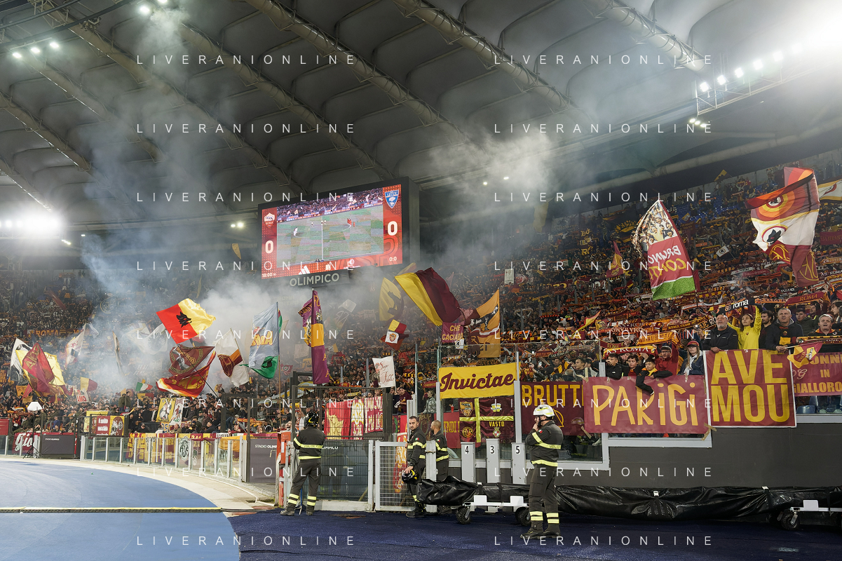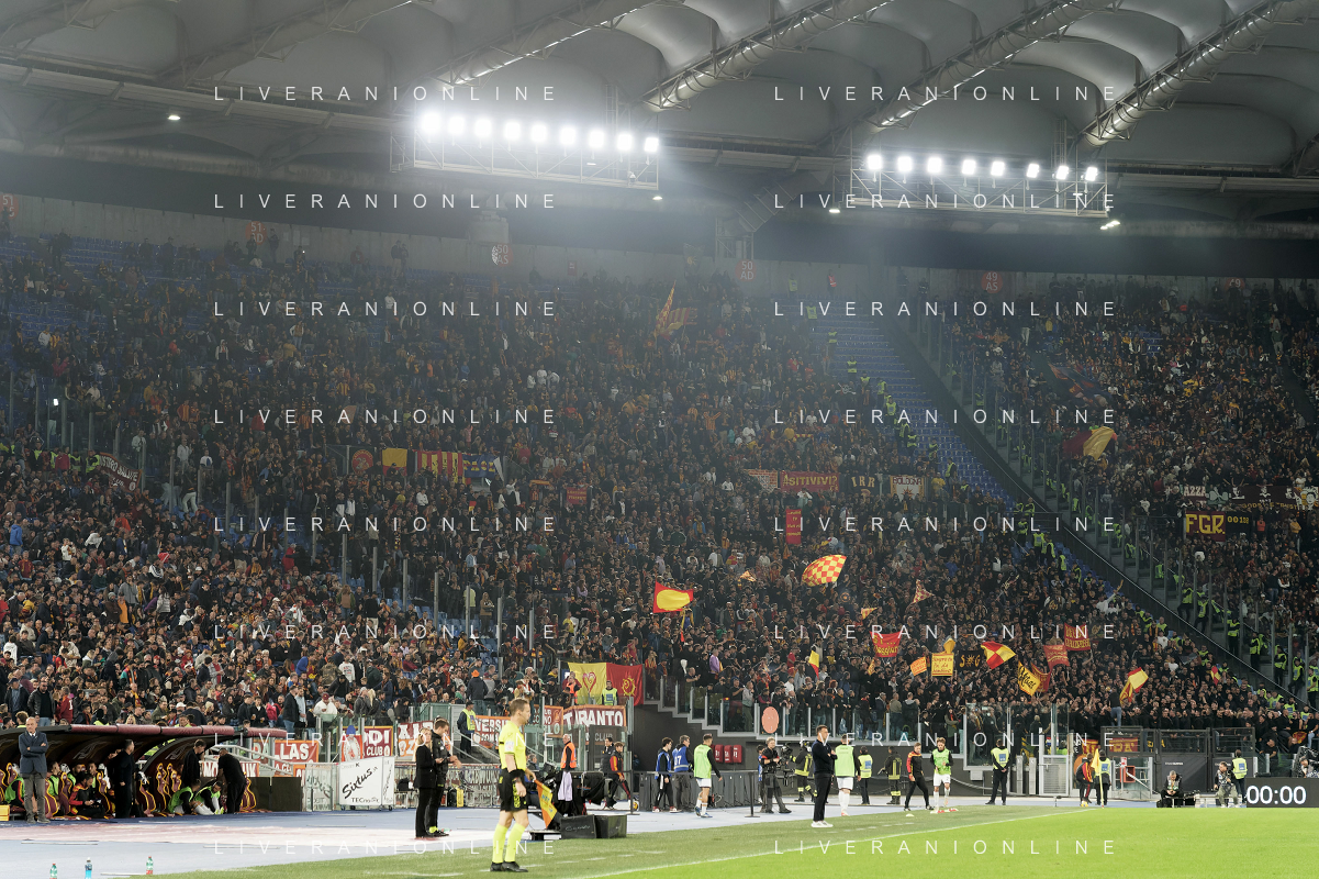 Supporters of AS Roma during the Italian soccer Serie A match AS Roma vs US Lecce on November 5, 2023 at Olympic Stadium in Rome, Italy. Photo by Emmanuele Mastrodonato/ag. Aldo Liverani sas