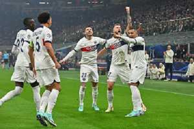 Milan vs Paris Saint-Germain nella foto esultanza Paris Saint-Germain dopo il gol dell'1 a 0 Milano 07-11-2023 Stadio Giuseppe Meazza - San Siro UEFA Champions League fase a gironi 4a giornata - Gruppo F foto Roberto Garavaglia/ag. Aldo Liverani sas / AGENZIA ALDO LIVERANI SAS