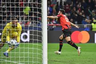 Milan vs Paris Saint-Germain nella foto Olivier Giroud (Milan) segna il gol del 2 a 1 Milano 07-11-2023 Stadio Giuseppe Meazza - San Siro UEFA Champions League fase a gironi 4a giornata - Gruppo F foto Roberto Garavaglia/ag. Aldo Liverani sas / AGENZIA ALDO LIVERANI SAS